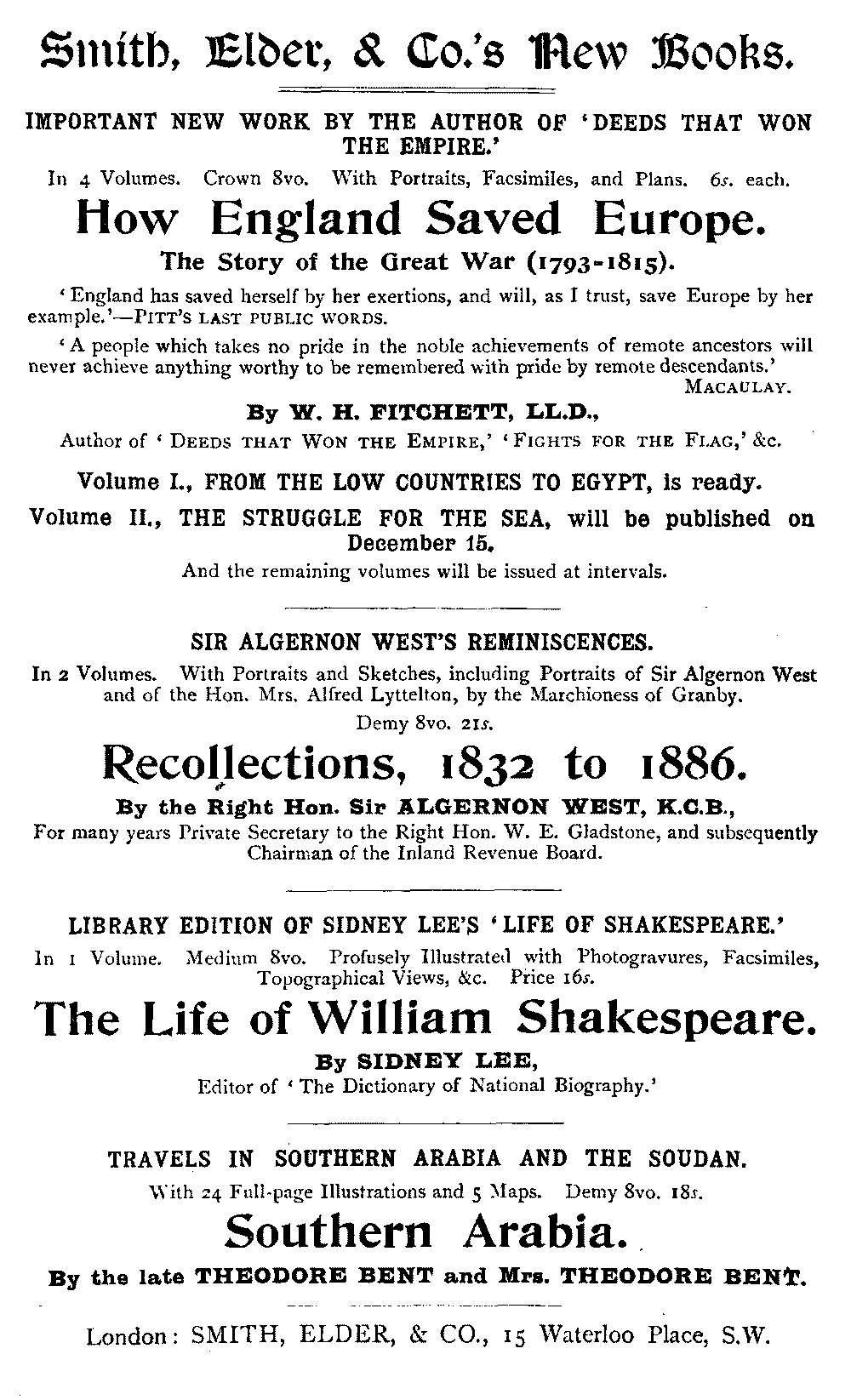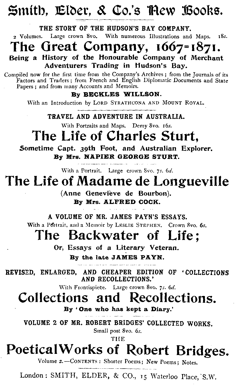 London. Published by Smith, Elder & Co. 15, Waterloo Place.