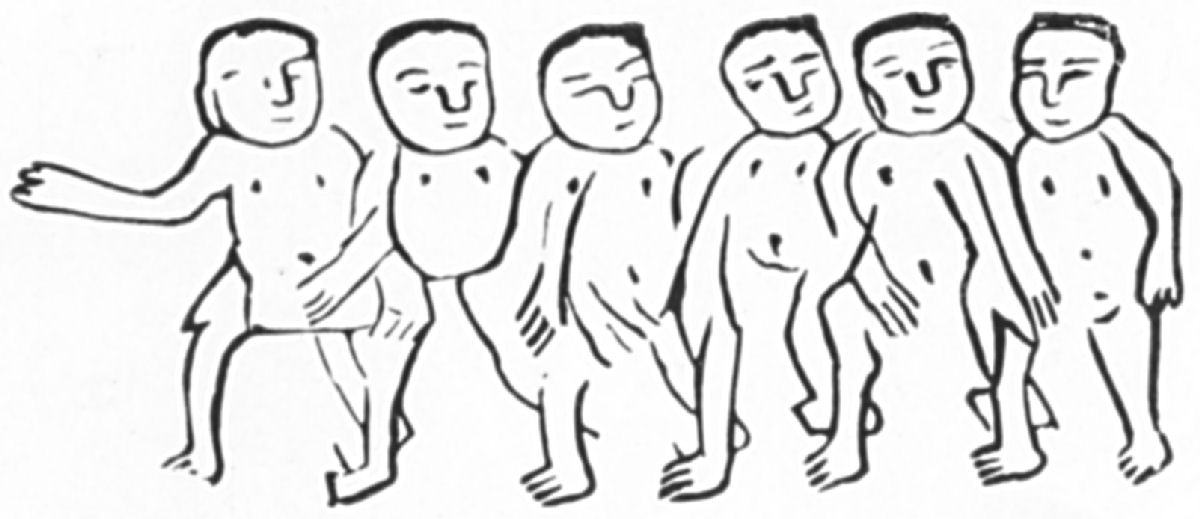 To the evidence derived from classical writers as to the nakedness of some of the inhabitants of early Britain, it is possible to add the evidence of the memorial stone. This example is reproduced from Sir Arthur Mitchell's Past in the Present, and there is at least one other example. |