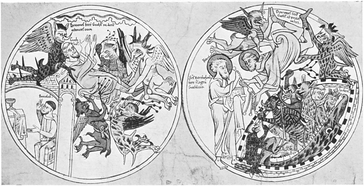 | [Pg x] 27 and 28. | Two Scenes from the Anglo-Saxon Life of St. Guthlac by Felix of Crowland, depicting the attack of the Demons | 351, 352 |