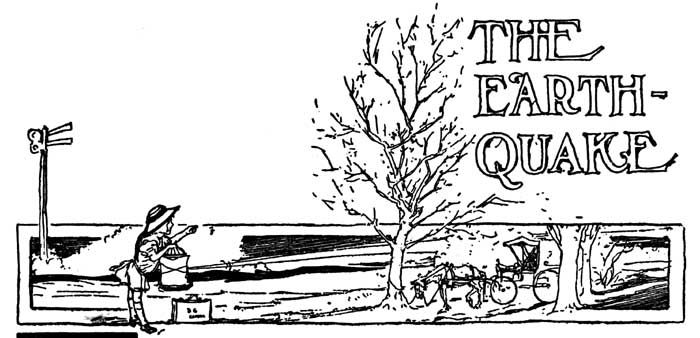 At once a little girl rose from her seat and walked to the door of the car, carrying a wicker suit-case in one hand and a round bird-cage covered up with newspapers in the other, while a parasol was tucked under her arm. The conductor helped her off the car and then the engineer started his train[Pg 14] again, so that it puffed and groaned and moved slowly away up the track. The reason he was so late was because all through the night there were times when the solid earth shook and trembled under him, and the engineer was afraid that at any moment the rails might spread apart and an accident happen to his passengers. So he moved the cars slowly and with caution.
