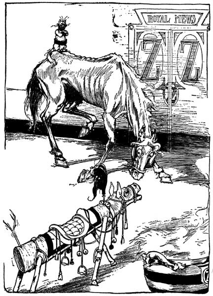 The horse did not stir. Dorothy thought he just wiggled one of his drooping ears, but that was all.