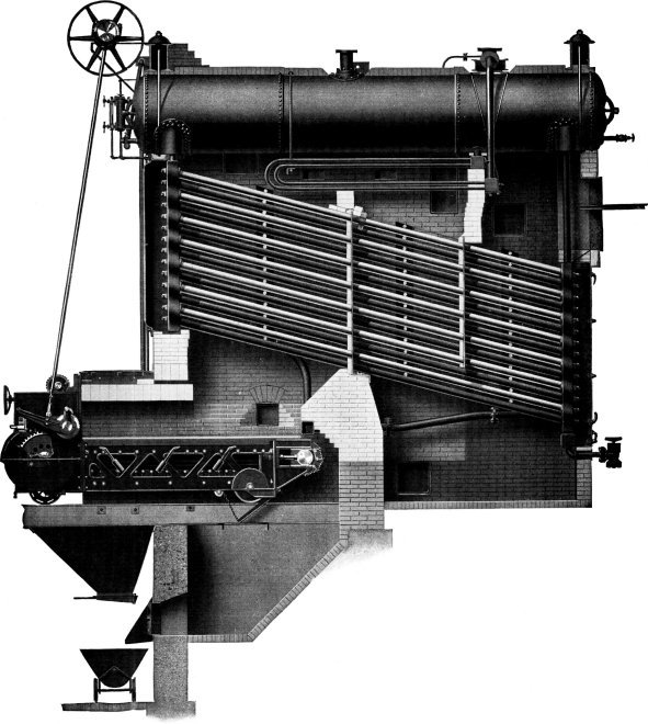 Wrought-steel Vertical Header Longitudinal Drum Babcock & Wilcox Boiler, Equipped with Babcock & Wilcox Superheater and Babcock & Wilcox Chain Grate Stoker