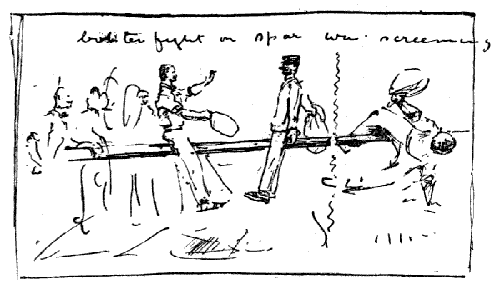 | A Blue Day at Sea, and Castles in Spain. A Fire Alarm, and A Dummy Dinner. The Beautiful French Lady. Marseilles and the Crowd on the Wharf. Bouillabaisses, and Réjane, and Cyrano, etc., and the head of a Serang for a tail-piece. | 27-34 |