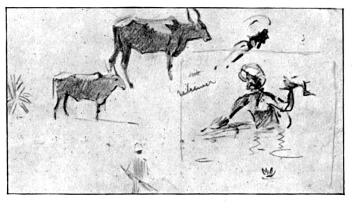 We drop from the comfort of the Cargo Steamer to the comparative discomfort of the train at Rangoon — Another plaguey inspection — Another joyous embarkation on another B.I. Boat — Calcutta — Benares and its Ghats; after the Golden Beauty of Burmah! — Street scenes and riverside horrors — A muddle of indecencies and religions — A superior Fakir's portrait — 333,000,000 gods — An artist's private deductions — Les Indes sans le British — Delhi and Agra. | 380-391 |
