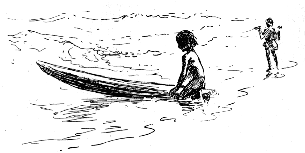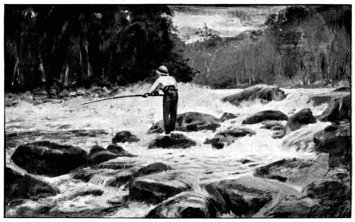 boat on it, and the trout rising in the middle.]