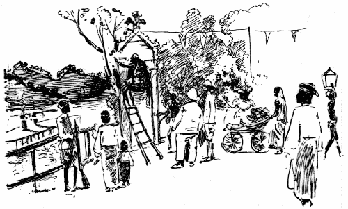 "The Blairin' trumpet sounded far," and the Prince comes over the sea, and lands at Rangoon — Receptions and processions; pandols, shamianas; and Royal Tomasha — Illuminations at night on the Lake, and the Royal Barges — Song about Our King Emperor — We start for Mandalay by river-boat up the Irrawaddy. | 245-250 |