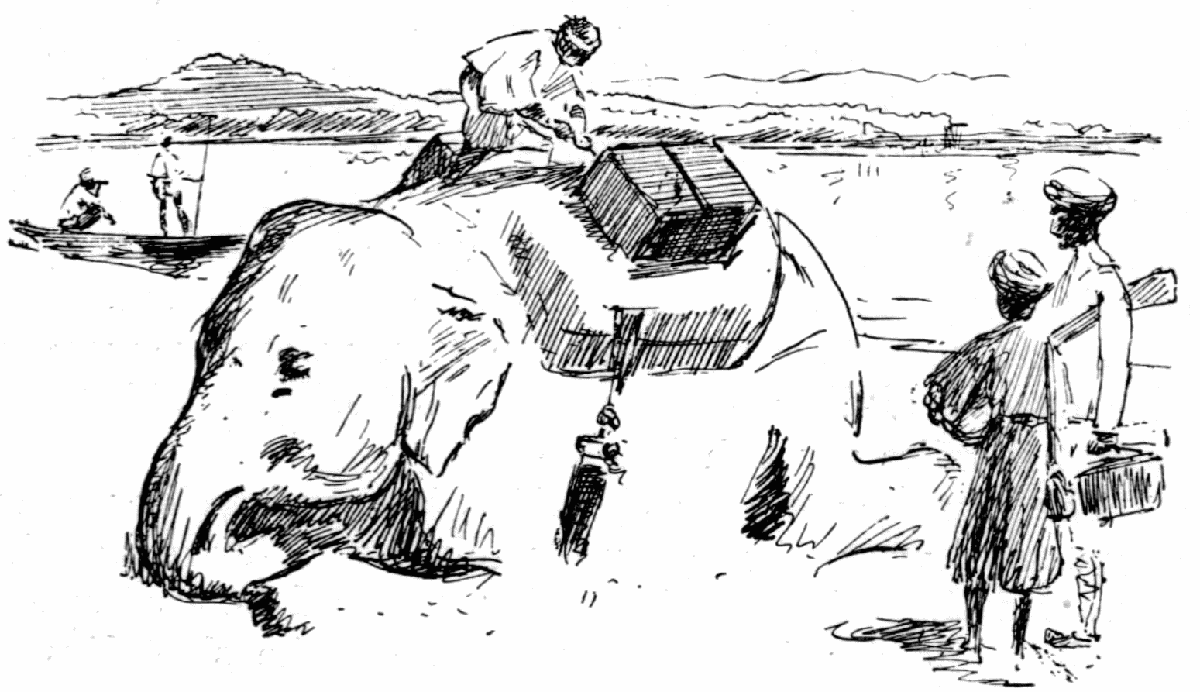 Anchor up — Mist on the river — "Stop her" — Pagodas and cane villages — Fishing with fly; A 35-lber — The Elephant Kedar Camp — Animal life on the river banks — We go aground — The crew strike work — We get away again — Kalone to Katha. | 303-313 |