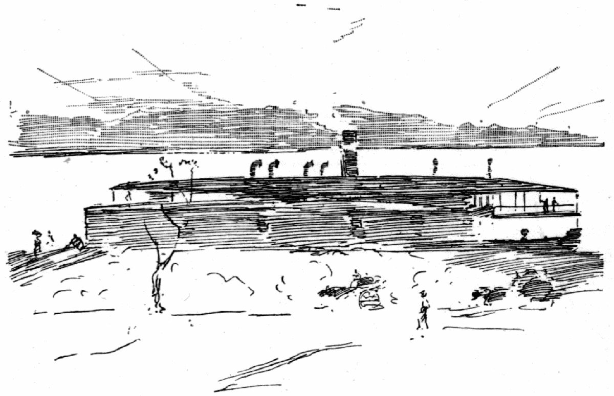 [along the top of the river bank. The arrangemant might]
