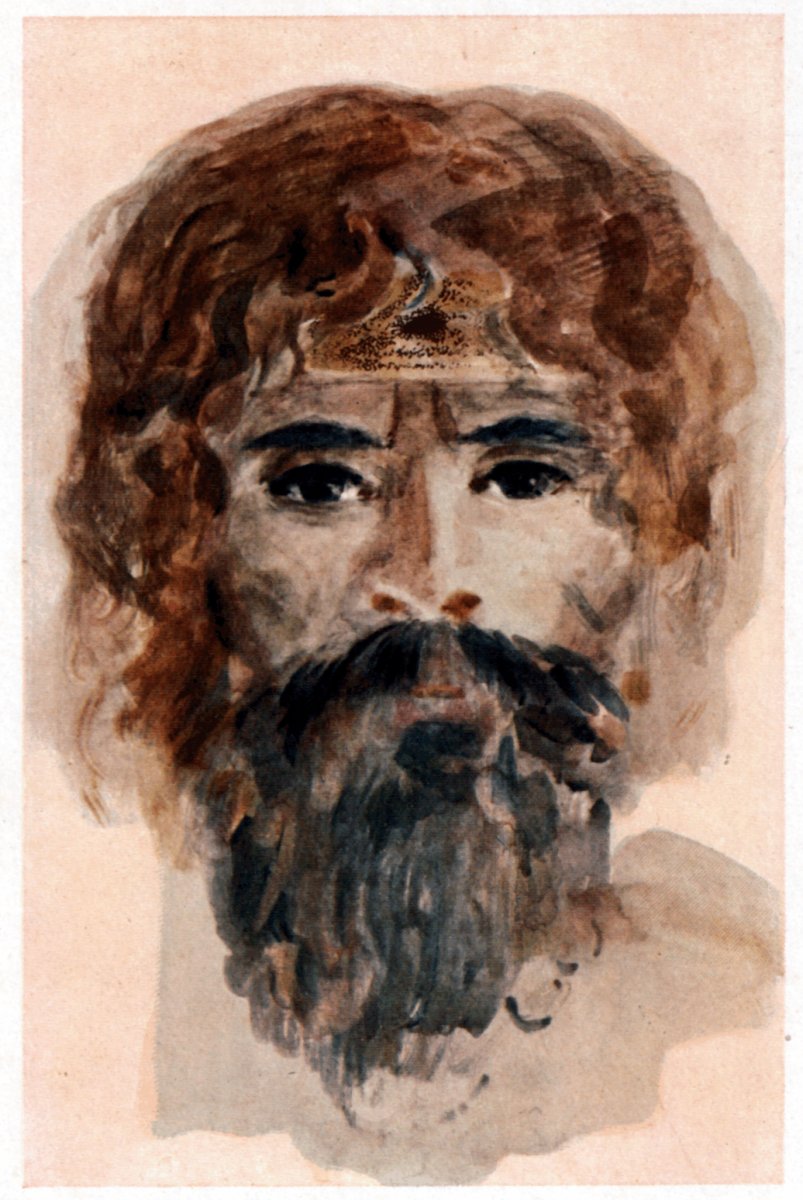 yellowish beards and black faces and black ends to their]