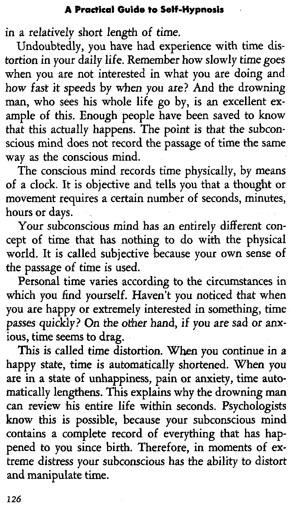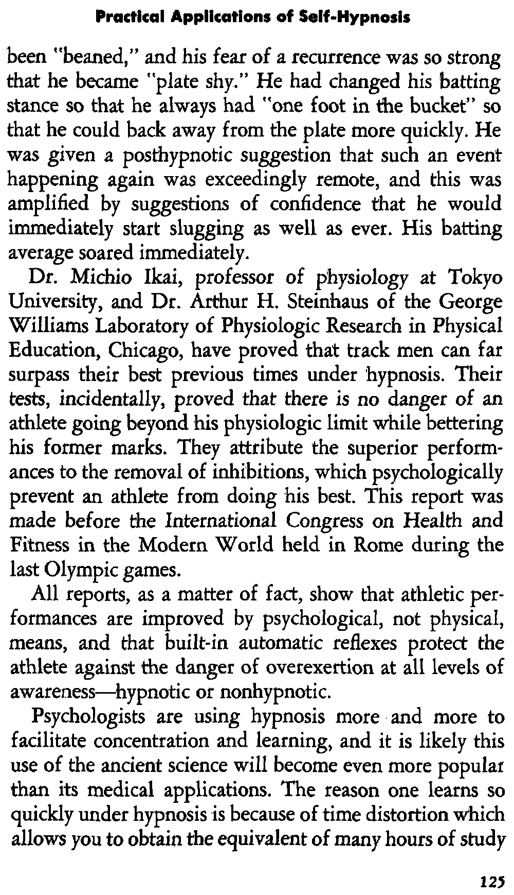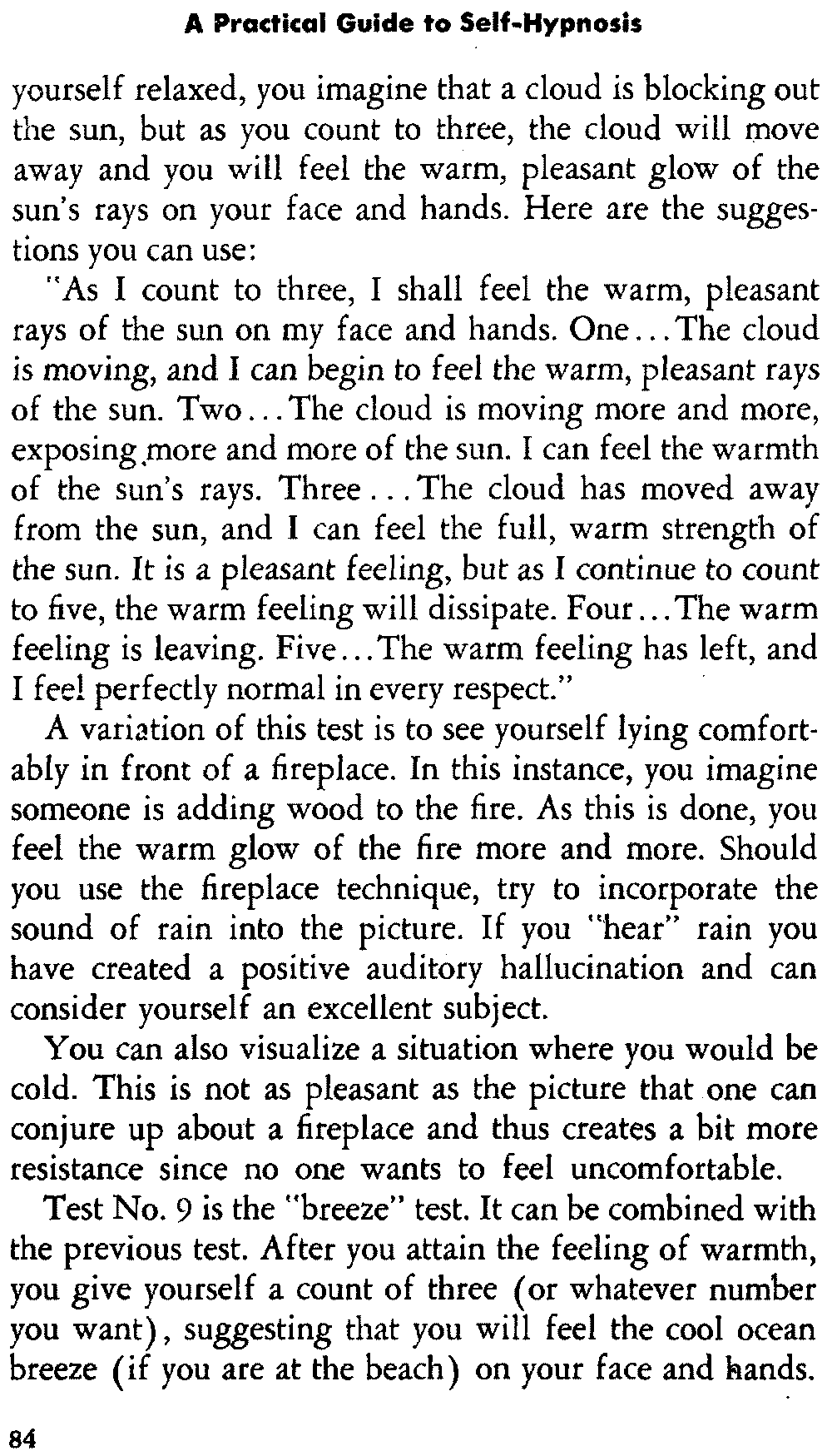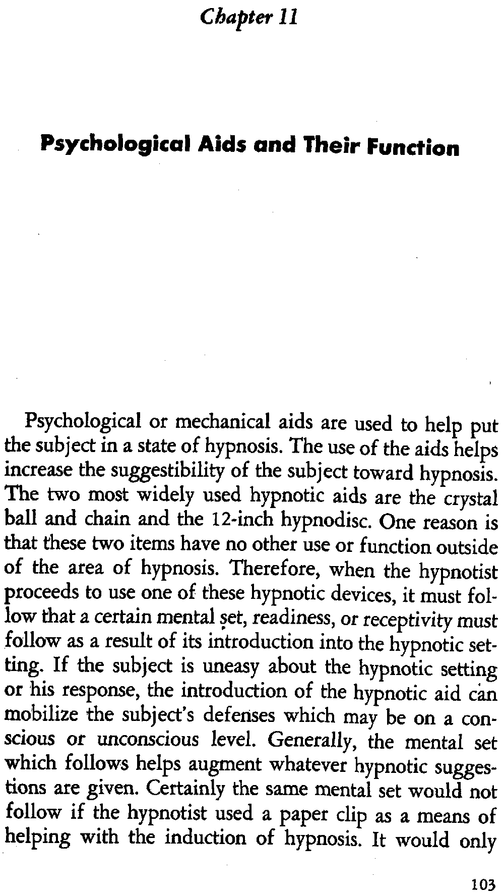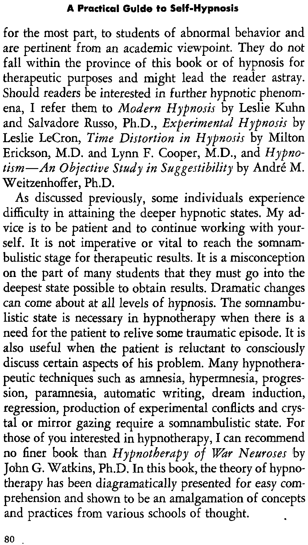 In self-hypnosis the same thing usually takes place. The subject is anxious to achieve self-hypnosis, but somehow the state eludes him. What's wrong? It may be that he is [12] unconsciously resisting it, hasn't conditioned himself sufficiently, or has achieved the hypnotic state and doesn't know he is in the state. This last statement may be surprising, but we will examine it in detail a little later on.