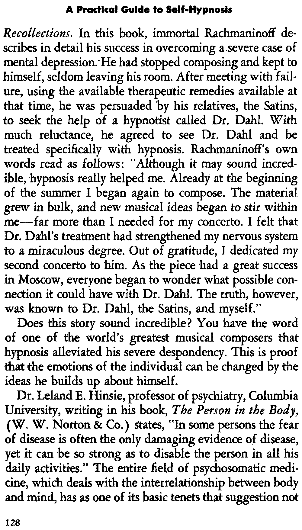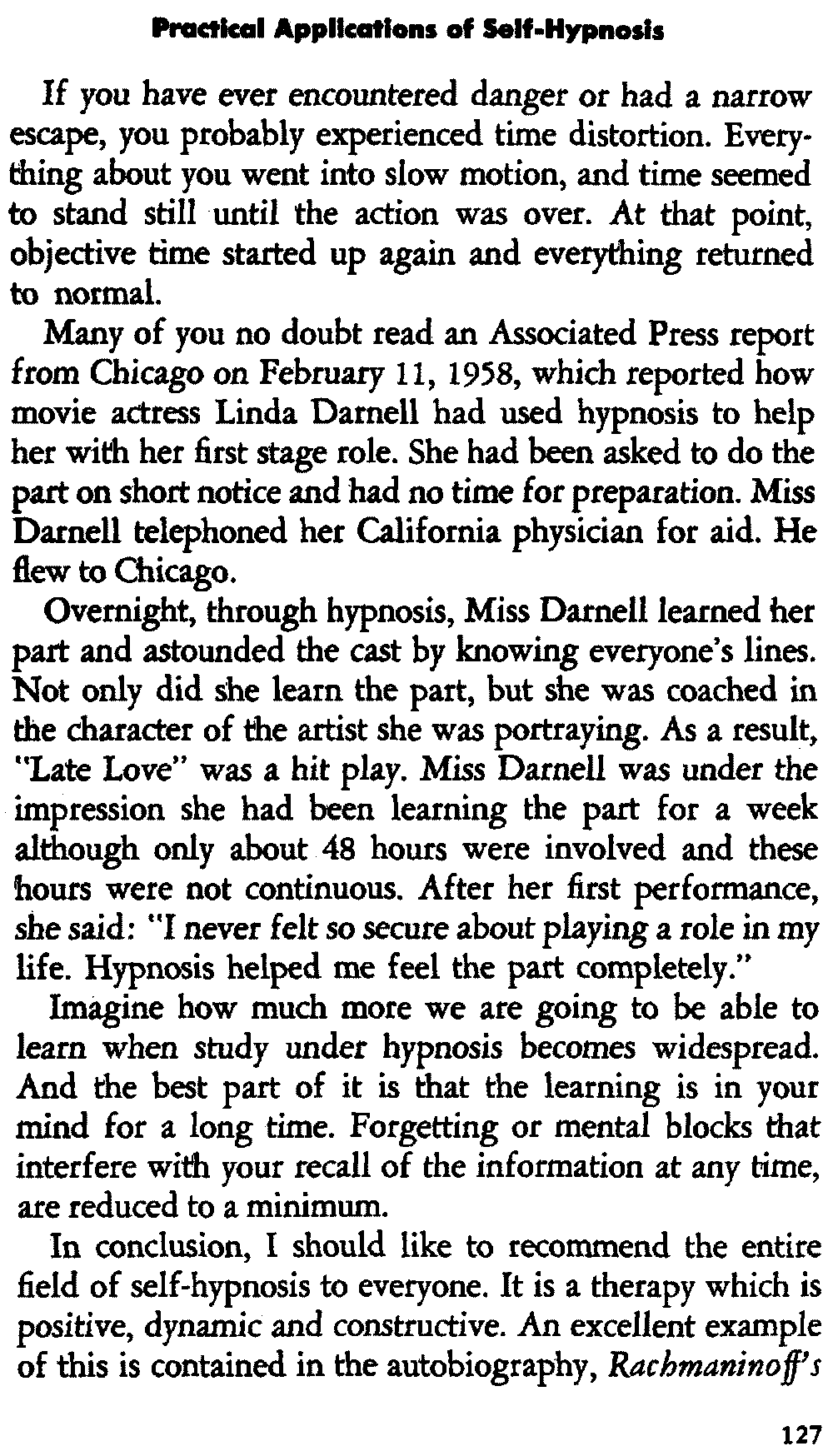 There is nothing hit or miss about hypnosis. Used intelligently, the results are the same for all those who are properly motivated. Nor are the results singular to modern hypnotists alone. In reviewing the literature going back more than 100 years, the same gratifying results were obtained. The reader would do well to scan some out-of-print books on hypnosis at the library to understand the point further.