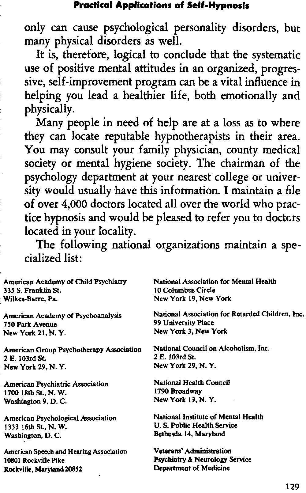 In the same chapter there is a list of addresses for organisations. The addresses for the American Group Psychotherapy Association and the National Council on Alcoholism are the same in the original; it is unclear whether this is intentional.