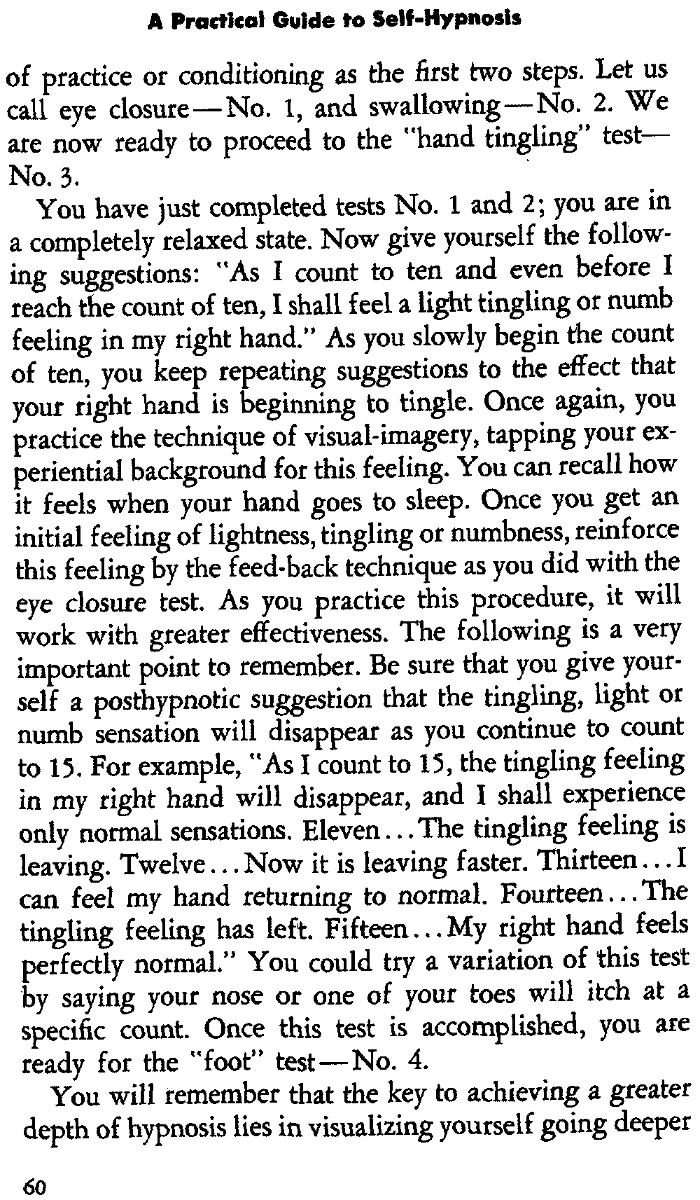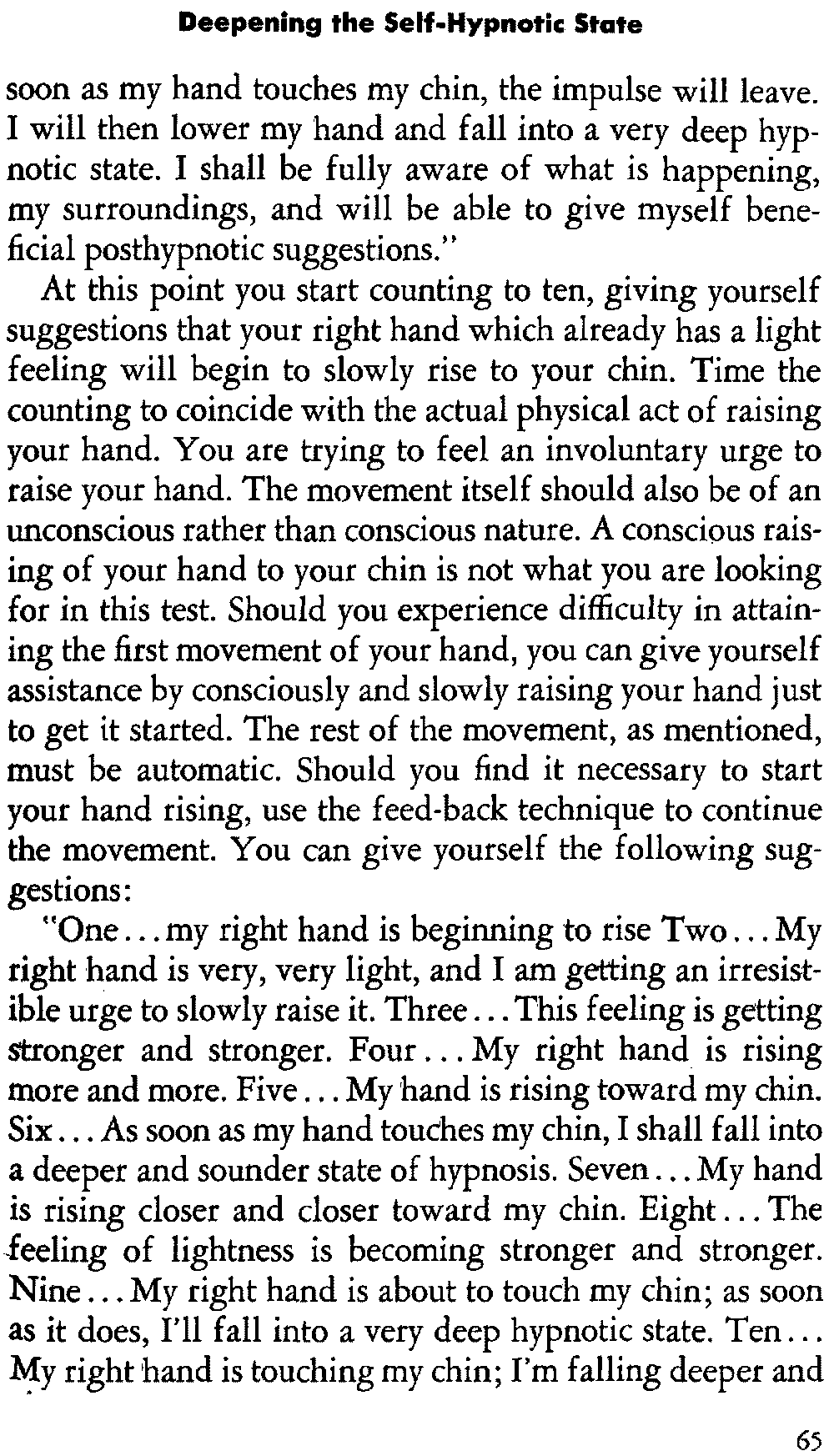 If you follow the instructions and exercises that I give you assiduously, you should be able to achieve a depth of self-hypnosis suitable for solving many of your personal problems.