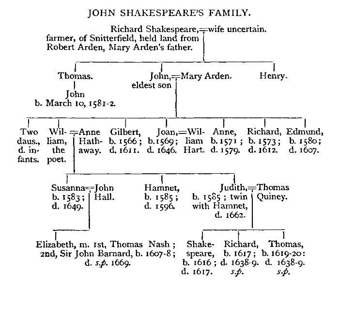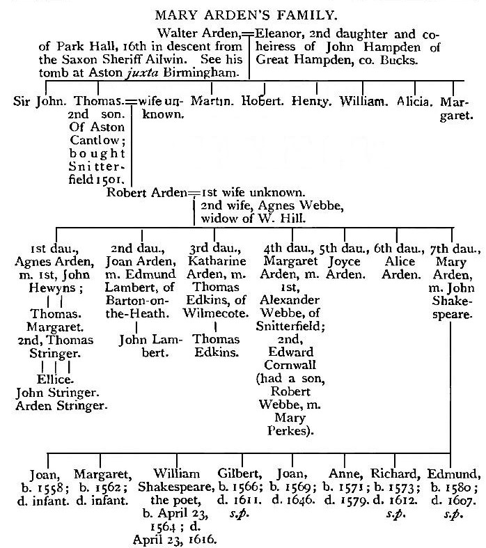 When I was invited to reprint in book-form the articles which had appeared in the Genealogical Magazine under the titles of "Shakespeare's Family" and the "Warwickshire Ardens," I carefully corrected them, and expanded them where expansion could be made interesting. Thus to the bald entries of Shakespeare's birth and burial I added a short life. Perhaps never before has anyone attempted to write a life of the poet with so little allusion to his plays and poems. My reason is clear; it is only the genealogical details of certain Warwickshire families of which I now treat, and it is only as an interesting Warwickshire gentleman that the poet is here included.