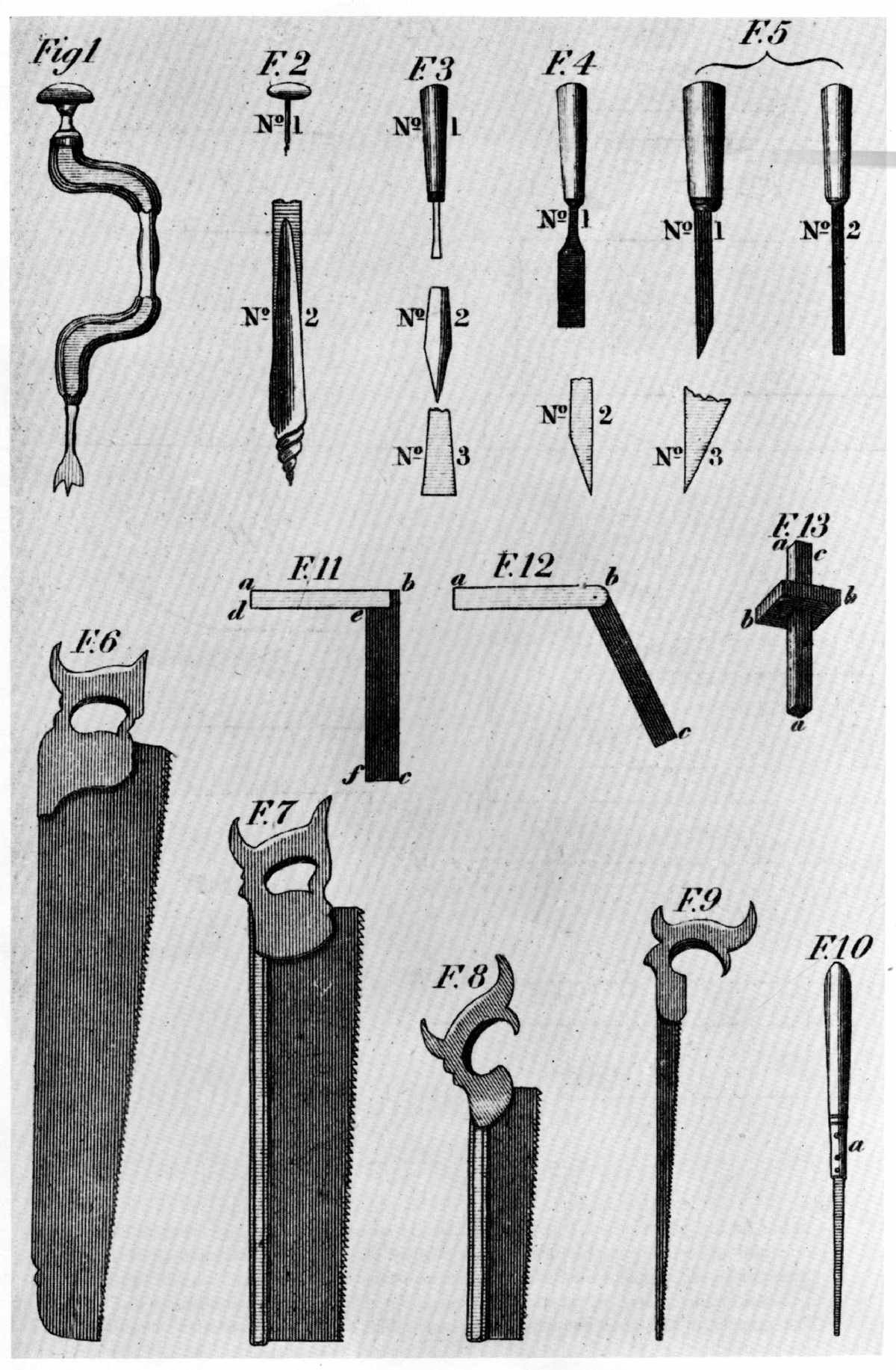 Figure 10.—1832: The brace and bit, gimlet, chisels, and