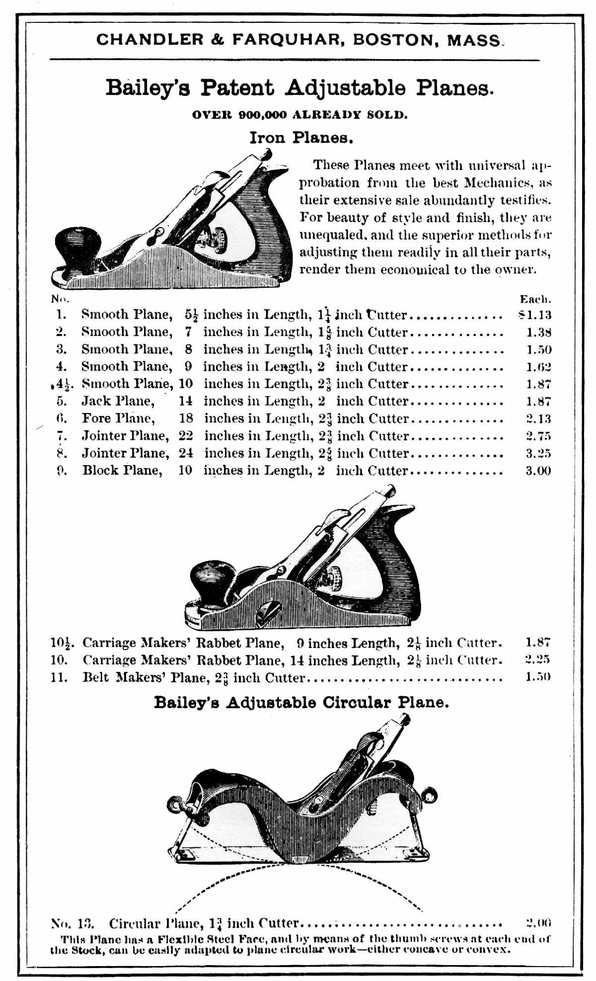 [6] Catalog, Book 87, Cutler and Co., Castle Hill Works, Sheffield [in the collections of the Victoria and Albert Museum, London]; and Illustrated Supplement to the Catalogue of Bench Planes, Arrowmammett Works (Middletown, Conn., 1857) [in the Smithsonian Institution Library].