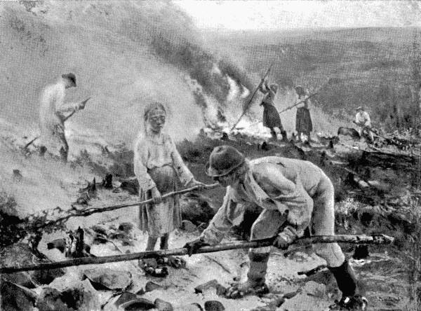 Finland is still rising out of the sea. Rocks that were marked with paint one hundred and fifty years ago at the water's edge, now show that the sea has gone down four or five feet. This is particularly noticeable in the north: where large ships once sailed, a rowing boat hardly finds waterway. Seaports have had to be moved. Slowly and gradually[15] Finland is emerging from the waters, just as slowly and gradually the people are making their voice heard among other nations.