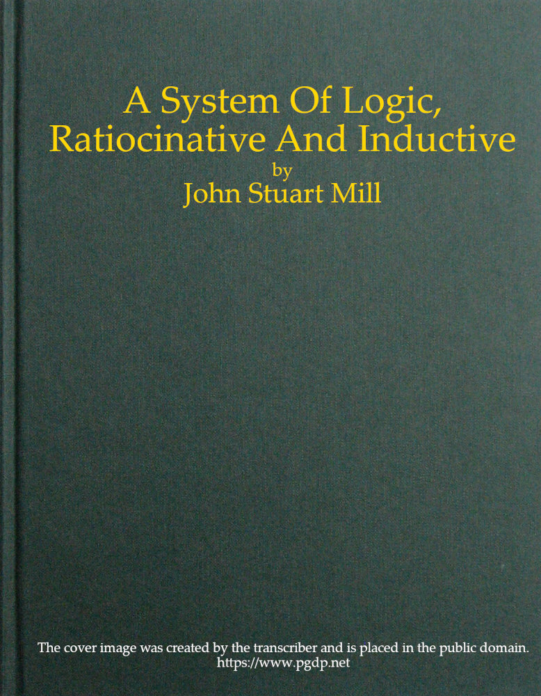 In the subsequent editions, the attempt to improve the work by additions and corrections, suggested by criticism or by thought, has been continued. [pg 008] The additions and corrections in the present (eighth) edition, which are not very considerable, are chiefly such as have been suggested by Professor Bain’s “Logic,” a book of great merit and value. Mr. Bain’s view of the science is essentially the same with that taken in the present treatise, the differences of opinion being few and unimportant compared with the agreements; and he has not only enriched the exposition by many applications and illustrative details, but has appended to it a minute and very valuable discussion of the logical principles specially applicable to each of the sciences—a task for which the encyclopedical character of his knowledge peculiarly qualified him. I have in several instances made use of his exposition to improve my own, by adopting, and occasionally by controverting, matter contained in his treatise.
