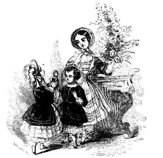 The Boy's Dress is made to correspond as nearly as may be with that of the youngest girl—embroidered pantalettes, and under sleeves trimmed with pointed lace.[Pg 288]