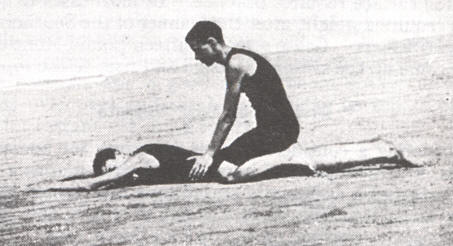 There is no "pull" or strain on any part, the suit fits smoothly and comfortably and allows free action of the whole body.