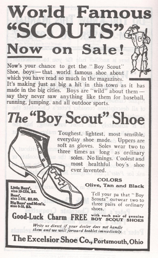 Now's your chance to get the "Boy Scout" Shoe, boys--that world famous shoe about which you have read so much in the magazines. It's making just as big a hit in this town as it has made in the big cities. Boys are "wild" about them--say they never saw anything like them for baseball, running, jumping, and all outdoor sports.