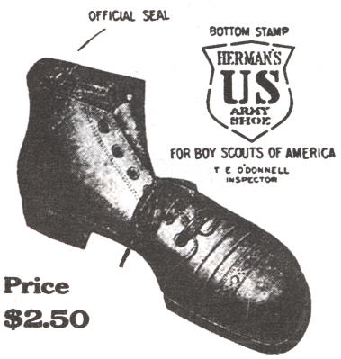 Joseph M. Herman & Co., of Boston, the world famous manufacturers of Herman's U. S. Army Shoes, the kind the soldiers, sailors, marines and militia wear, have created the moat comfortable and best wearing shoe for boys that ever was known. It is made on the sensible orthopedic last designed by army surgeons. The regular army stamp is on these shoes and so is the official Boy Scout seal. Look for these marks when buying. The genuine