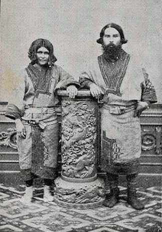 The present characteristics of the Ainos have led many to doubt whether they are really the descendants of the hardy barbarians who so long withstood the military power of the Japanese. But the effect of centuries of repression and conquest must be taken into account. The Ainos have become the peaceable and inoffensive people which we now find them, by many generations of cruel and imperious restraint. That they should have become in this sequence of events a quiet and submissive people is not wonderful. The number of Ainos in the island of Yezo is given in 1880, which is the last census made of them, as 16,63717; and this number is believed [pg 023] to be gradually decreasing. Travellers who have visited them unite in testifying to their great amiability and docility. Physically they are a sturdy and well developed race. The characteristic which has been noticed in them more than any other is the abundant growth of hair. The men have a heavy and bushy head of hair and a full beard which is allowed to grow down to their chests. Other parts of the body are also covered with a growth which far surpasses that of the ordinary races. In the matter of food, clothing, houses and implements, they remain in the most primitive condition. In personal habits they are far less cleanly than their Japanese neighbors. Travellers18 who have remained with them for many weeks assert that in all that time they never saw them wash either their persons or their clothes.