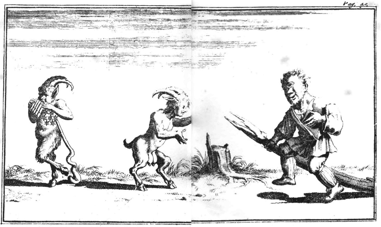 Now the beastly Priapus may recreate himself without contradiction in lust and filthiness; now the sly Mercury may, without discovery, go on in his thieveries, and nimble-fingered juggles; the sooty Vulcan may now renew his wonted custom of making the other gods laugh by his hopping so limpingly, and coming off with so many dry jokes, and biting repartees. Silenus, the old doting lover, to shew his activity, may now dance a frisking jig, and the nymphs be at the same sport naked. The goatish satyrs may make up a merry ball, and Pan, the blind harper may put up his bagpipes, and sing bawdy catches, to which the gods, especially when they are almost drunk, shall give a most profound attention. But why would I any farther rip open and expose the weakness of the gods, a weakness so childish and absurd, that no man can at the same time keep his countenance, and make a relation of it? Now therefore, like Homer's wandering muse, I will take my leave of heaven, and come down again here below, where we shall find nothing happy, nay, nothing tolerable, without my presence and assistance. And in the first place consider how providently nature has took care that in all her works there should be some piquant smack and relish of Folly: for since the Stoics define wisdom to be conducted by reason, and folly nothing else but the being hurried by passion, lest our life should otherwise have been too dull and inactive, that creator, who out of clay first tempered and made us up, put into the composition of our humanity more than a pound of passions to an ounce of reason; and reason he confined within the narrow cells of the brain, whereas he left passions the whole body to range in. Farther, he set up two sturdy champions to stand perpetually on the guard, that reason might make no assault, surprise, nor in-road: anger, which keeps its station in the fortress of the heart; and Just, which like the signs Virgo and Scorpio, rules the belly and secret members. Against the forces of these two warriors how unable is reason to bear up and withstand, every day's experience does abundantly witness; while let reason be never so importunate in urging and reinforcing her admonitions to virtue, yet the passions bear all before them, and by the least offer of curb or restraint grow but more imperious, till reason itself, for quietness sake, is forced to desist from all further remonstrance.