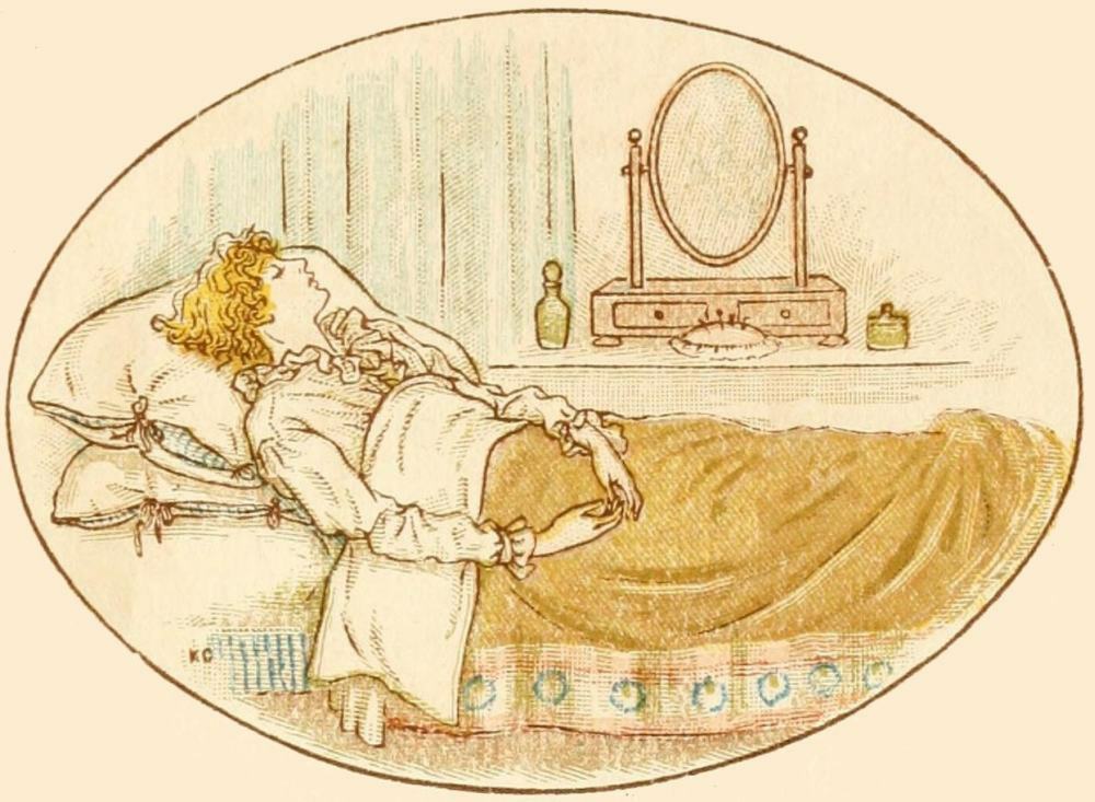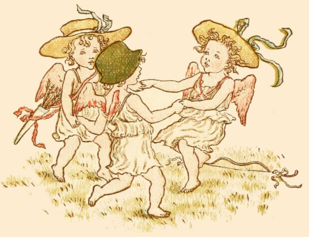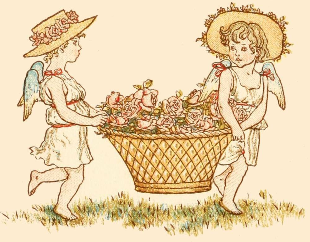 In midst of all, there lay a sleeping youth Of fondest beauty. Sideway his face reposed On one white arm, and tenderly unclosed, By tenderest pressure, a faint damask mouth To slumbery pout; just as the morning south Disparts a dew-lipp'd rose. Above his head, Four lily stalks did their white honours wed To make a coronal; and round him grew All tendrils green, of every bloom and hue, Together intertwined and trammel'd fresh: The vine of glossy sprout; the ivy mesh, Shading its Ethiop berries; and woodbine, Of velvet leaves, and bugle blooms divine. Hard by, Stood serene Cupids watching silently. One, kneeling to a lyre, touch'd the strings, Muffling to death the pathos with his wings; And, ever and anon, uprose to look At the youth's slumber; while another took A willow bough, distilling odorous dew, And shook it on his hair; another flew In through the woven roof, and fluttering-wise, Rain'd violets upon his sleeping eyes. |