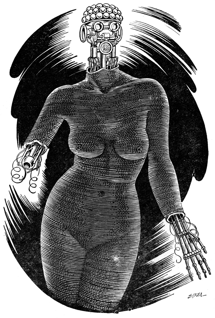 Hendricks got to his feet and walked over. He nudged the inert form with his foot, turning it over a little. He could see the metal hull, the aluminum ribs and struts. More wiring fell out. Like viscera. Heaps of wiring, switches and relays. Endless motors and rods.