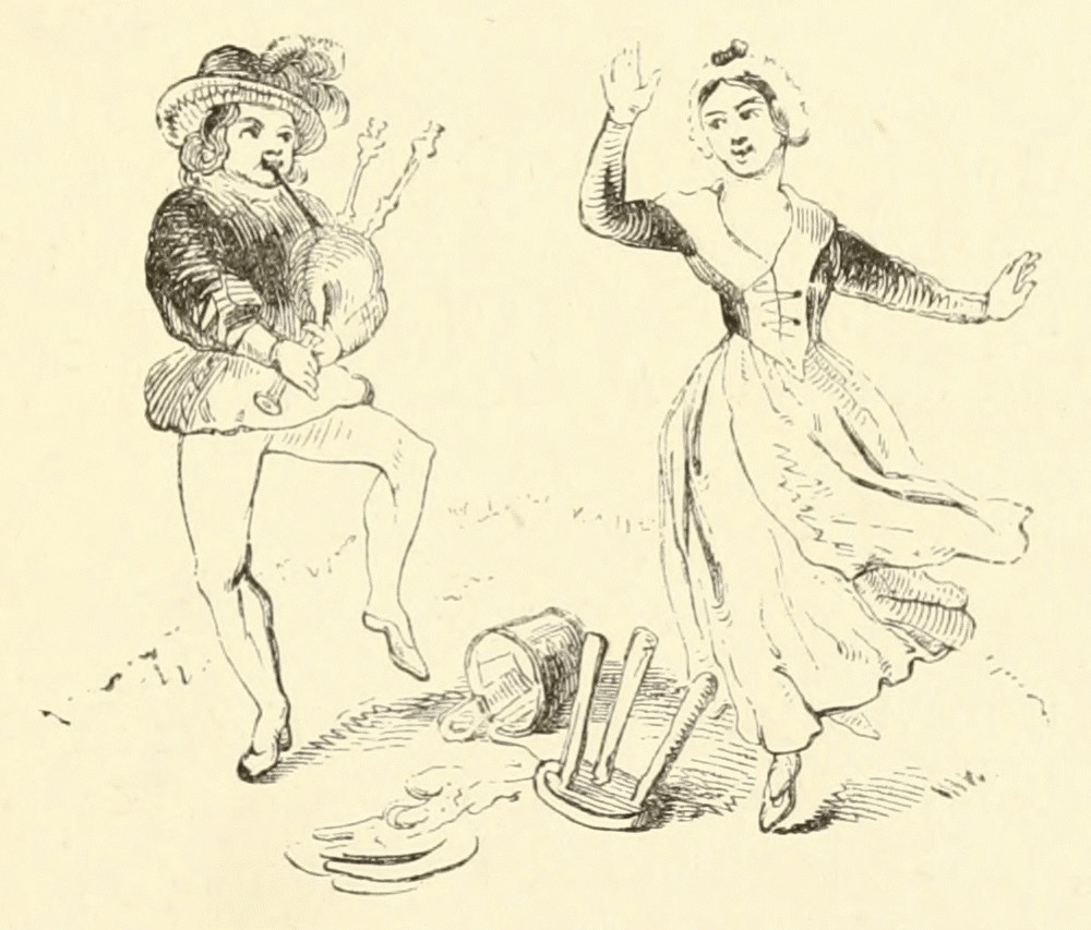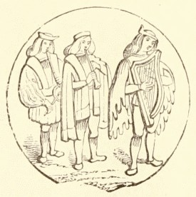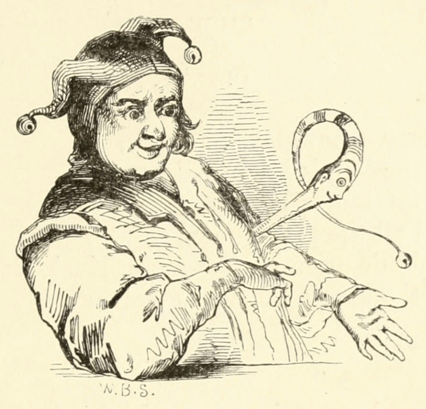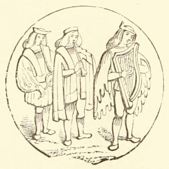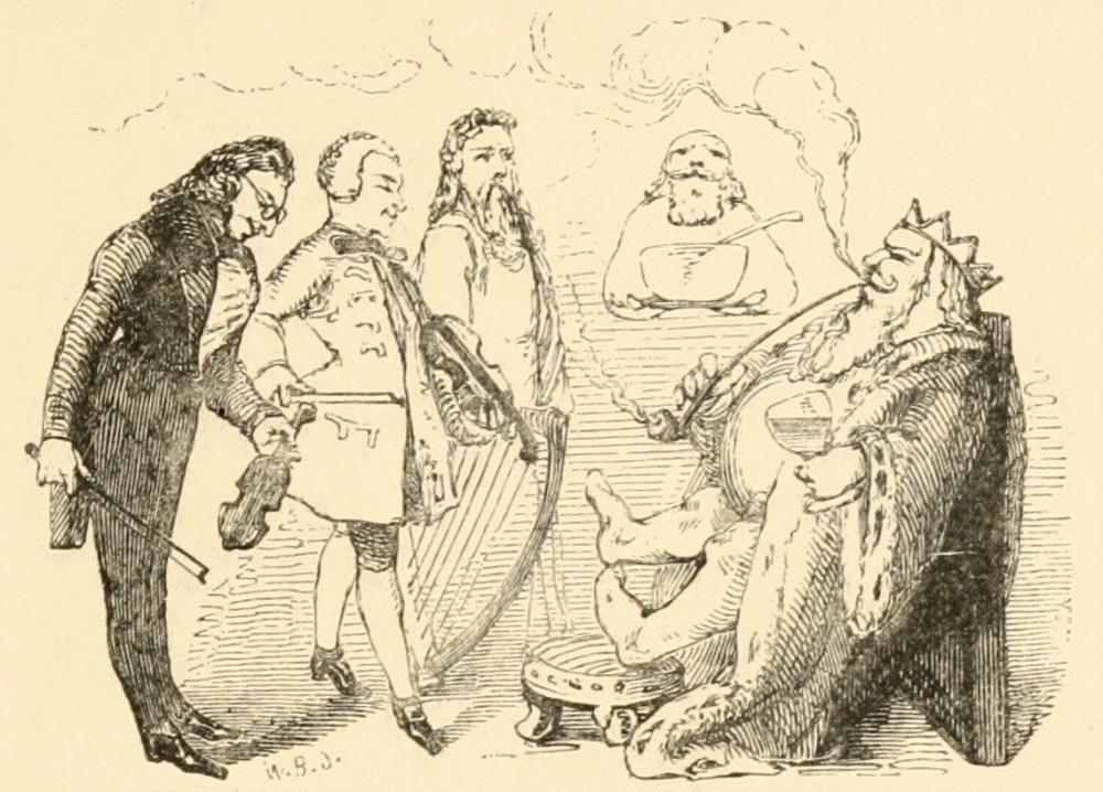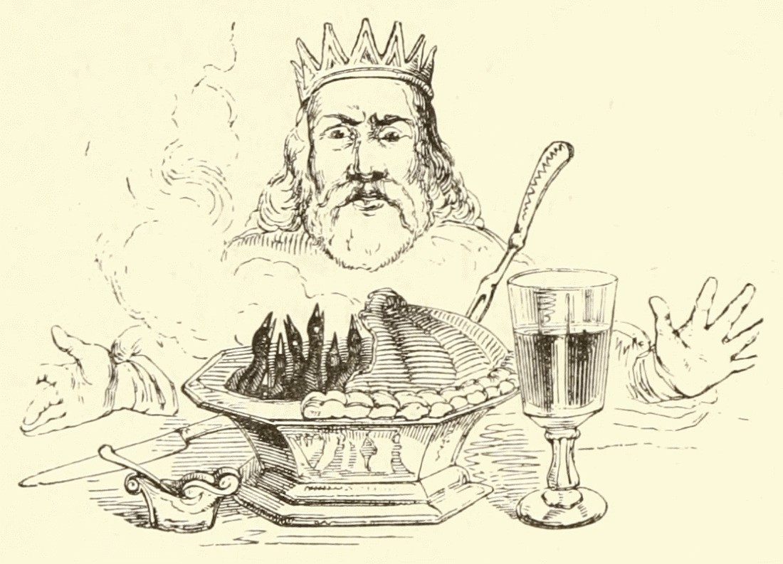 [The traditional Nursery Rhymes of England commence with a legendary satire on King Cole, who reigned in Britain, as the old chroniclers inform [page 2] us, in the third century after Christ. According to Robert of Gloucester, he was the father of St. Helena, and if so, Butler must be wrong in ascribing an obscure origin to the celebrated mother of Constantine. King Cole was a brave and popular man in his day, and ascended the throne of Britain on the death of Asclepiod, amidst the acclamations of the people, or, as Robert of Gloucester expresses himself, the "fole was tho of this lond y-paid wel y-nou." At Colchester there is a large earthwork, supposed to have been a Roman amphitheatre, which goes popularly by the name of "King Cole's kitchen." According to Jeffrey of Monmouth, King Cole's daughter was well skilled in music, but we unfortunately have no evidence to show that her father was attached to that science, further than what is contained in the foregoing lines, which are of doubtful antiquity. The following version of the song is of the seventeenth century, the one given above being probably a modernization:—