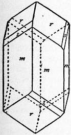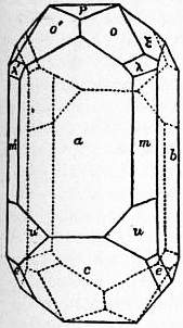 DODECAHEDRON (Gr. δώδεκα, twelve, and ἕδρα, a face or base), in geometry, a solid enclosed by twelve plane faces. The “ordinary dodecahedron” is one of the Platonic solids (see Polyhedron). The Greeks discovered that if a line be divided in extreme and mean proportion, then the whole line and the greater segment are the lengths of the edge of a cube and dodecahedron inscriptible in the same sphere. The “small stellated dodecahedron,” the “great dodecahedron” and the “great stellated dodecahedron” are Kepler-Poinsot solids; and the “truncated” and “snub dodecahedra” are Archimedean solids (see Polyhedron). In crystallography, the regular or ordinary dodecahedron is an impossible form since the faces cut the axes in irrational ratios; the “pentagonal dodecahedron” of crystallographers has irregular pentagons for faces, while the geometrical solid, on the other hand, has regular ones. The “rhombic dodecahedron,” one of the geometrical semiregular solids, is an important crystal form. Many other dodecahedra exist as crystal forms, for which see Crystallography.