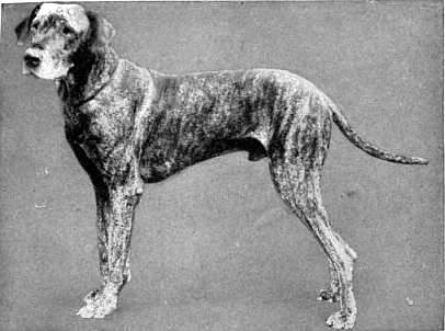 The Great Dane is somewhat similar in general character, but is still more gracefully built, with slender limbs and more pointed muzzle. The ears, naturally pendent at the tips, are always cropped. It is probable that the strain contains greyhound blood.