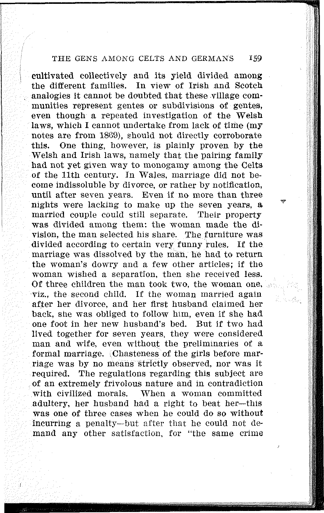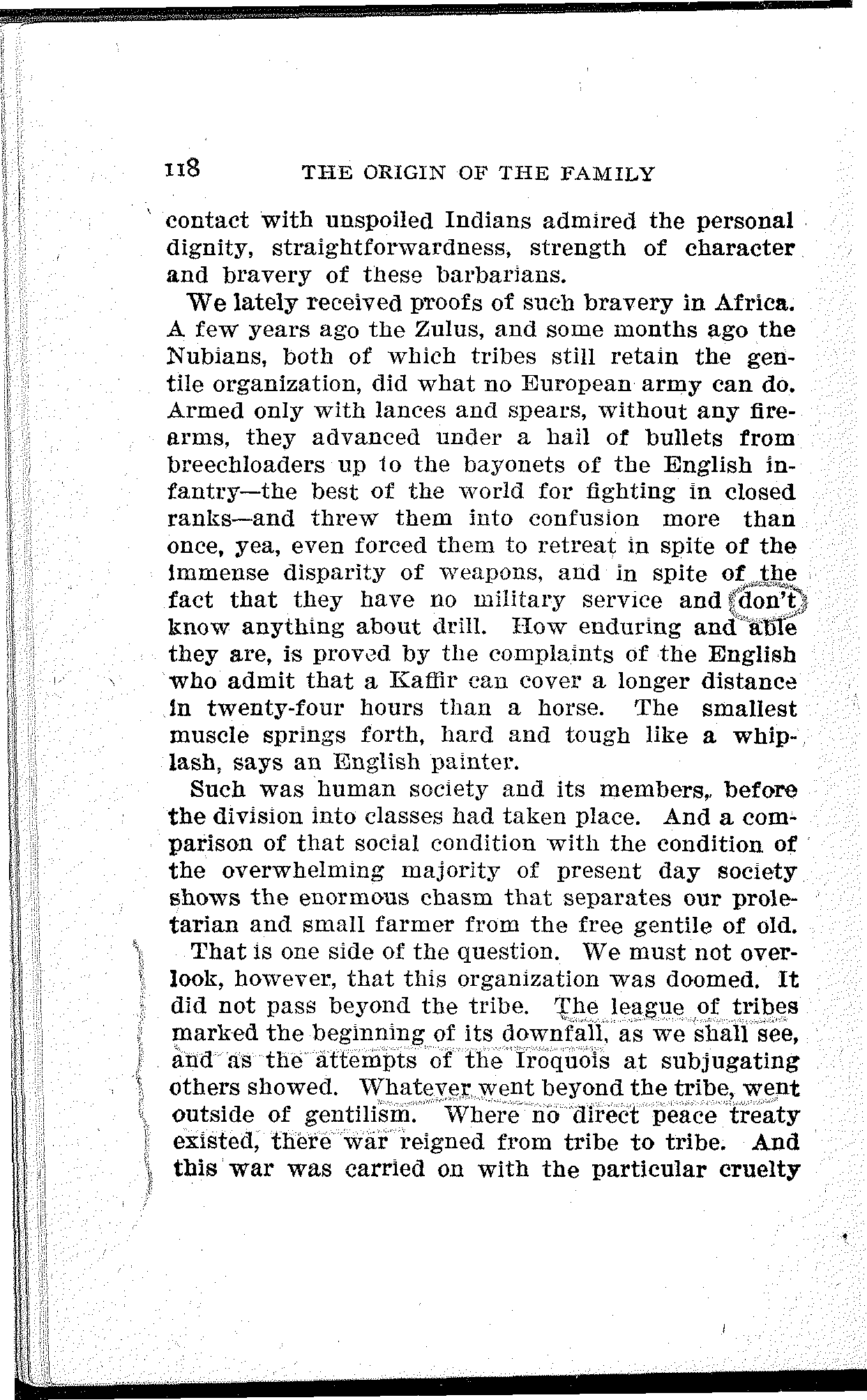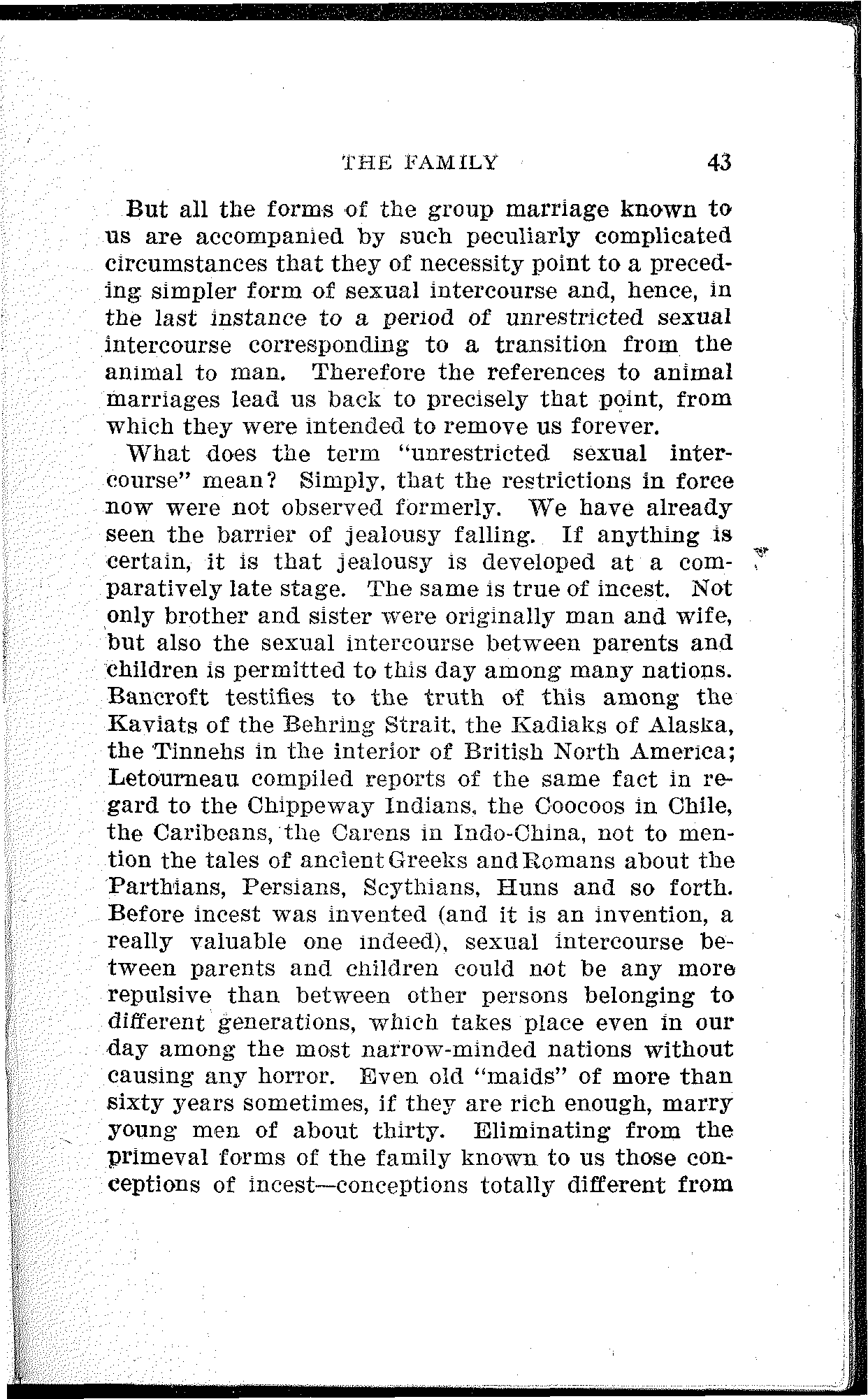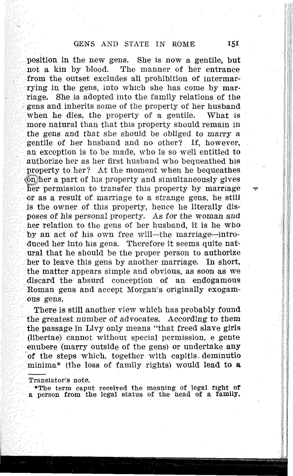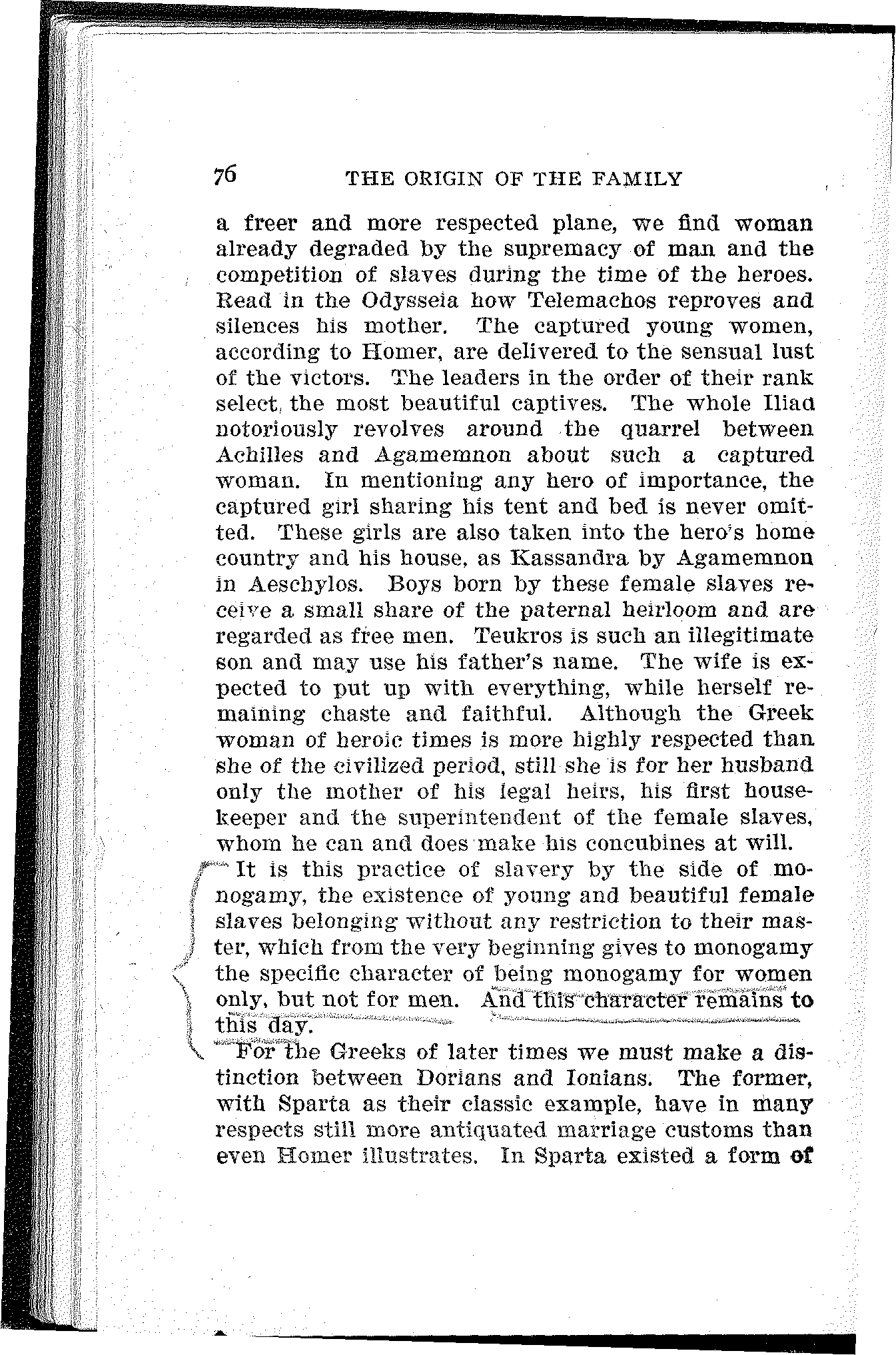 My work has been translated into different languages. First into Italian; L'origine della famiglia, della proprietá privata e dello stato, versione riveduta dall' autore, di Pasquale Martignetti; Benevento, 1885.[13] Then into Roumanian: Origina familei, proprietatei private si a statului, traducere de Ivan Nadejde, in the Jassy periodical "Contemporanul," September, 1885, to May, 1886. Furthermore into Danish: Familjens, Privatejendommens og Statens Oprindelse, Dansk, af Forfatteren gennemgaaet Udgave, besörget af Gerson Trier, Kjoebenhavn, 1888. A French translation by Henri Ravé, founded on the present German edition, is under the press.