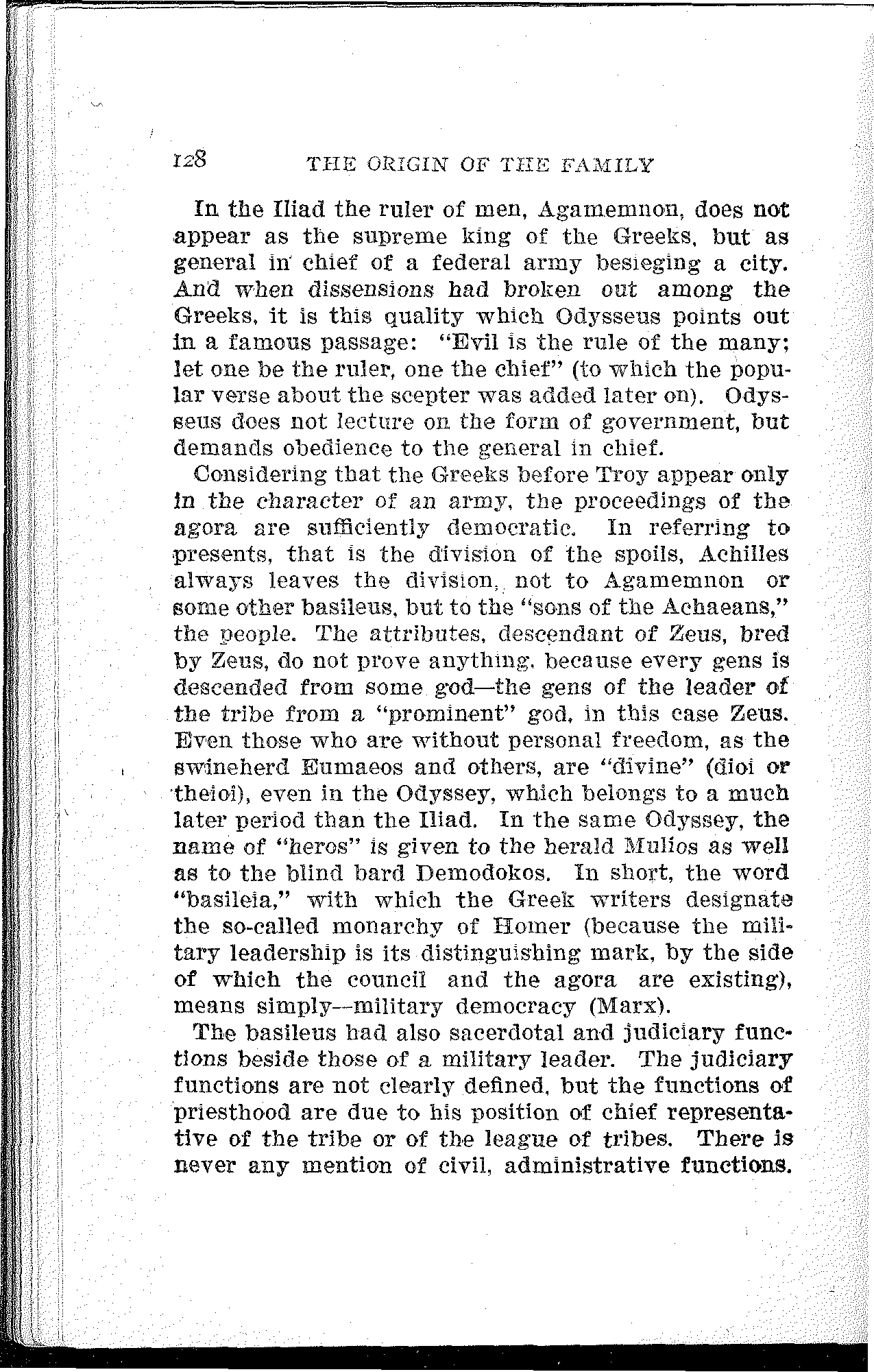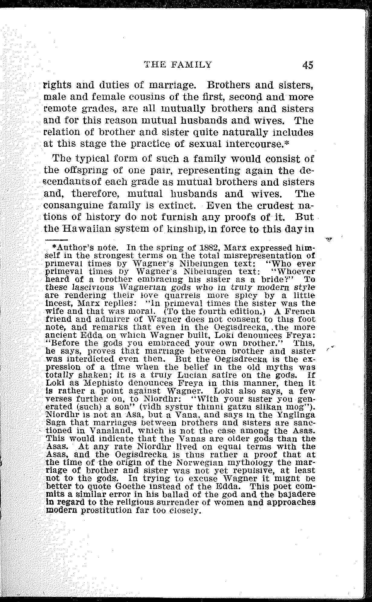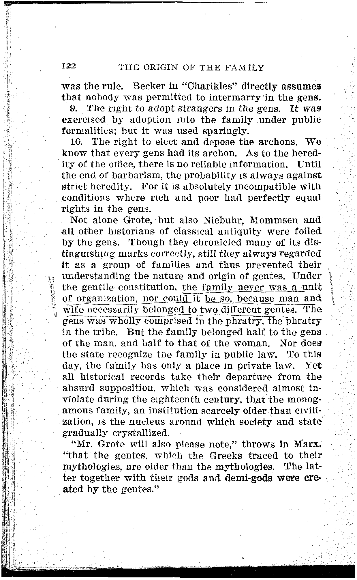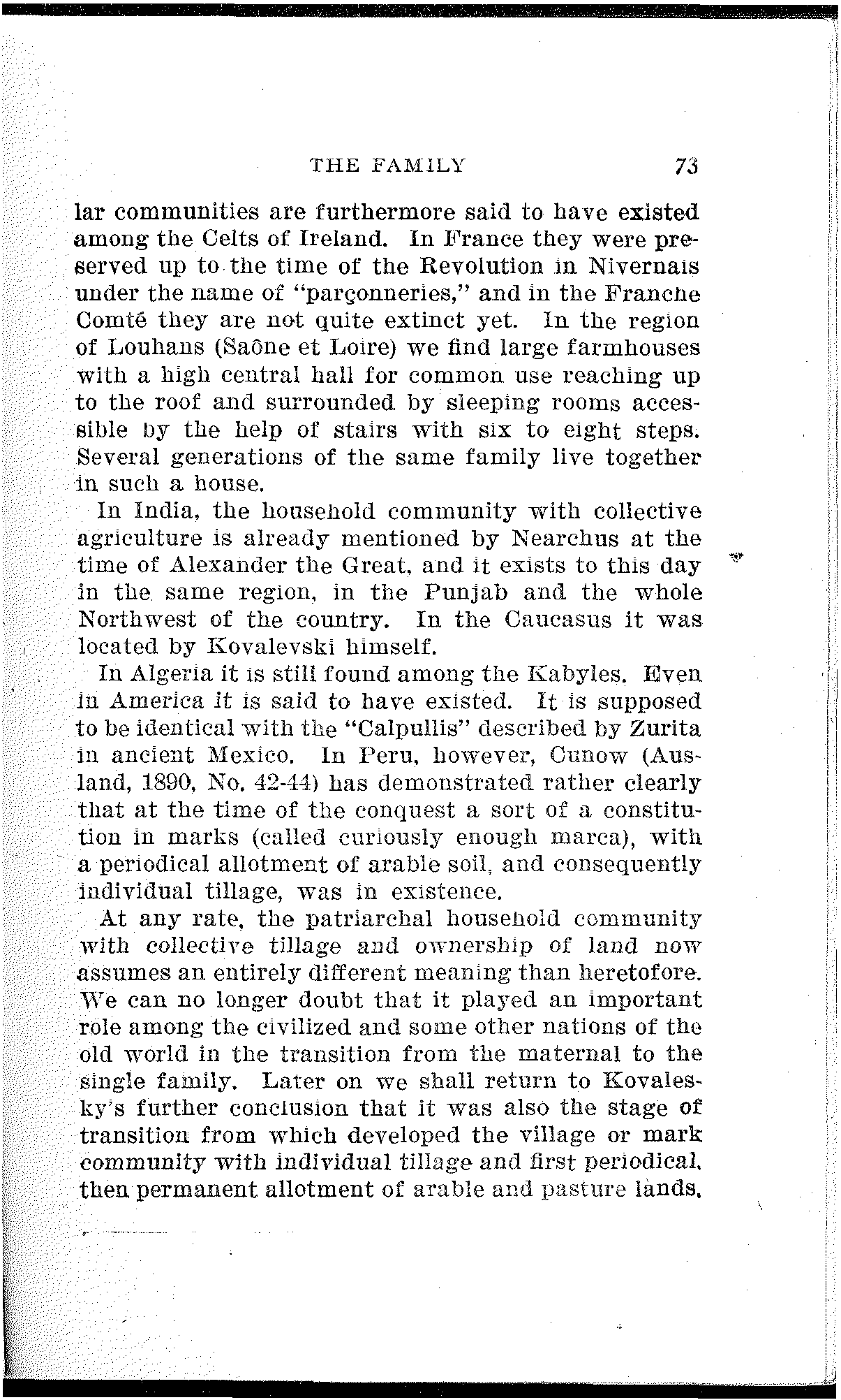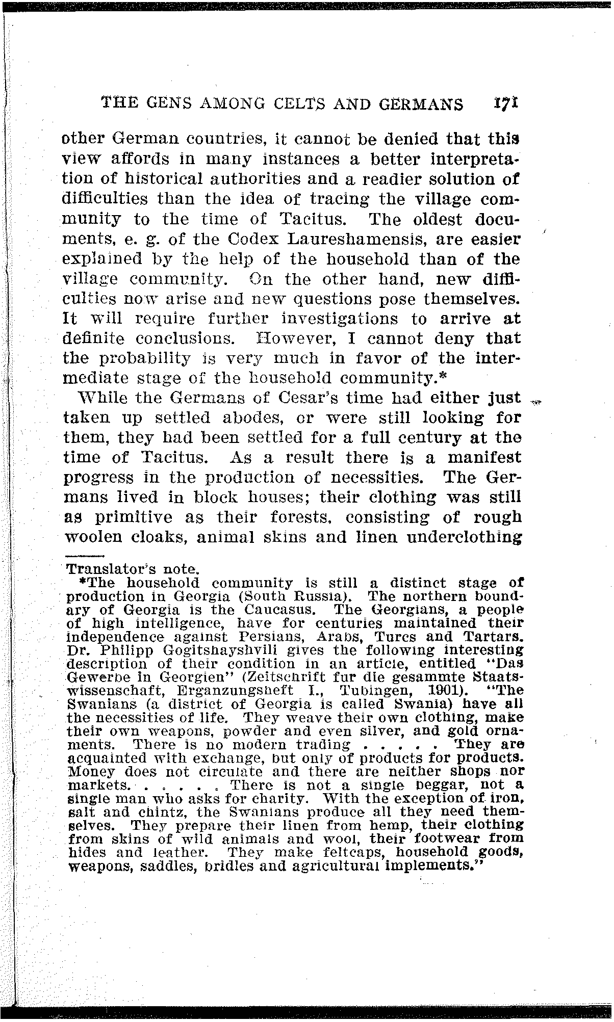 My work has been translated into different languages. First into Italian; L'origine della famiglia, della proprietá privata e dello stato, versione riveduta dall' autore, di Pasquale Martignetti; Benevento, 1885.[13] Then into Roumanian: Origina familei, proprietatei private si a statului, traducere de Ivan Nadejde, in the Jassy periodical "Contemporanul," September, 1885, to May, 1886. Furthermore into Danish: Familjens, Privatejendommens og Statens Oprindelse, Dansk, af Forfatteren gennemgaaet Udgave, besörget af Gerson Trier, Kjoebenhavn, 1888. A French translation by Henri Ravé, founded on the present German edition, is under the press.