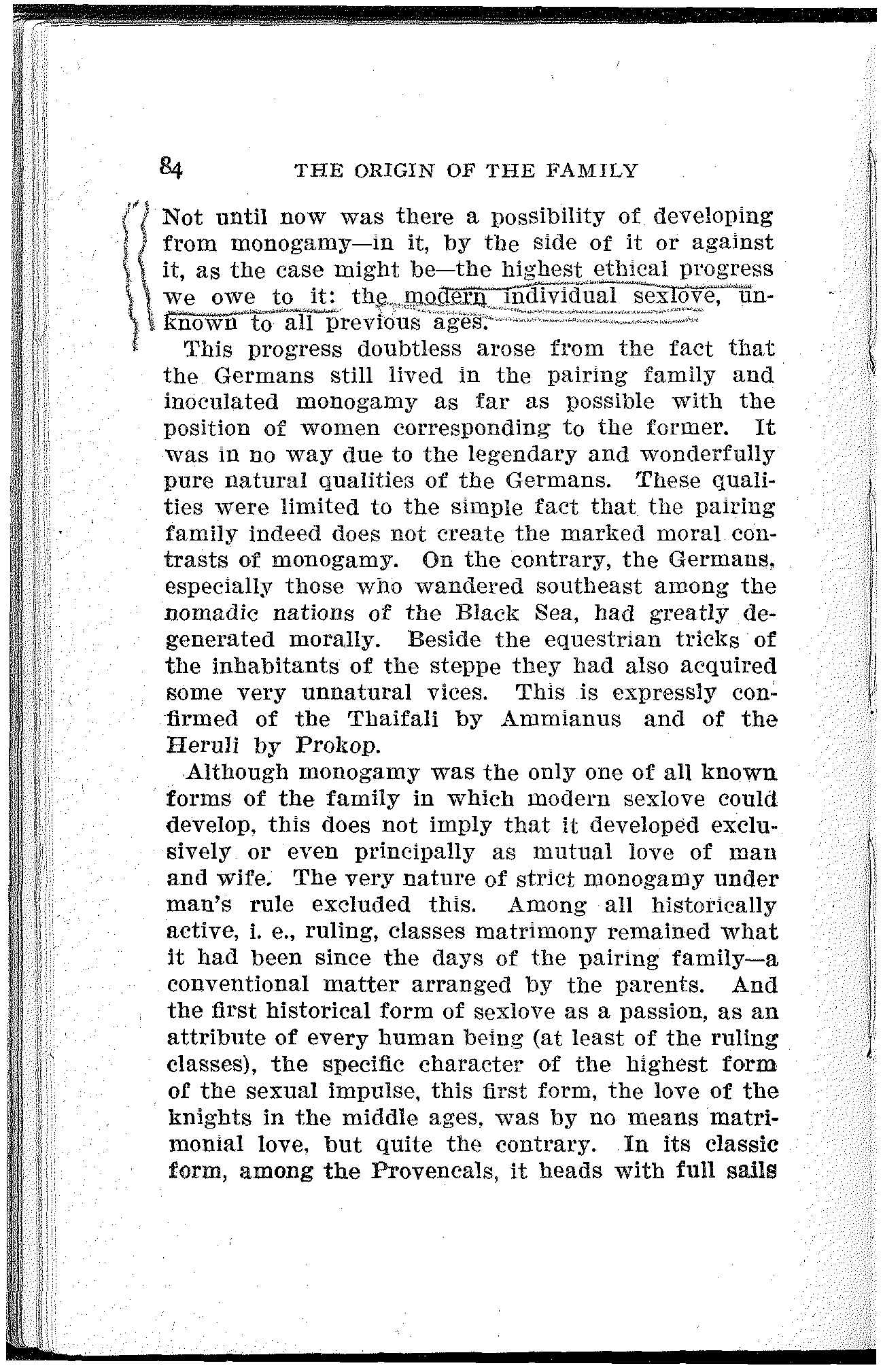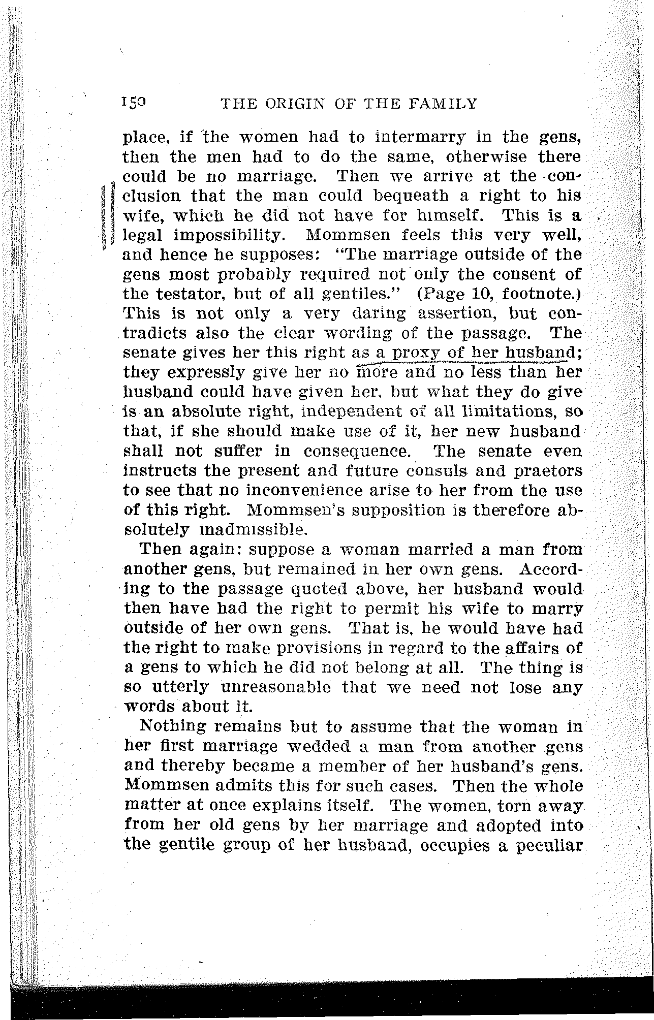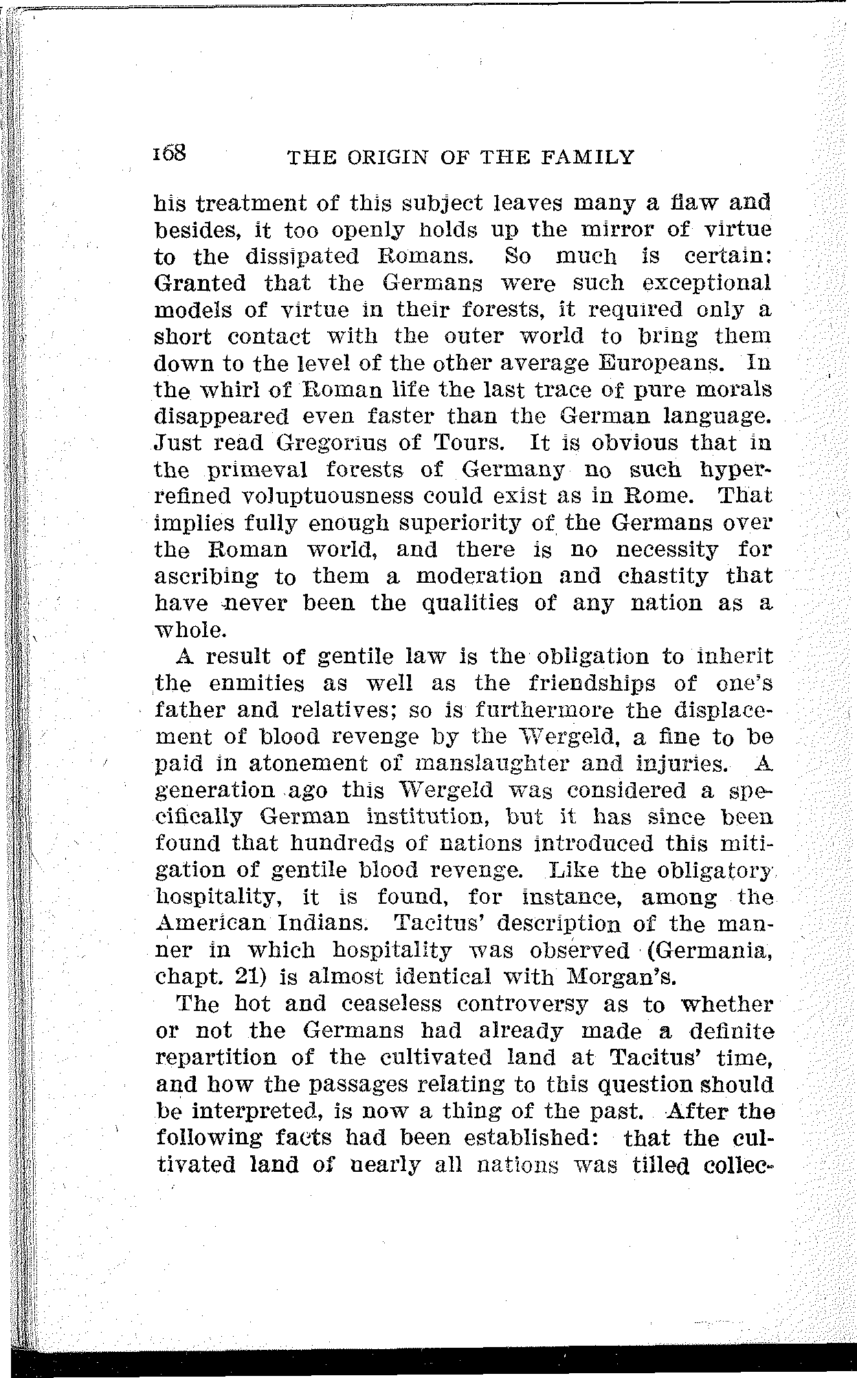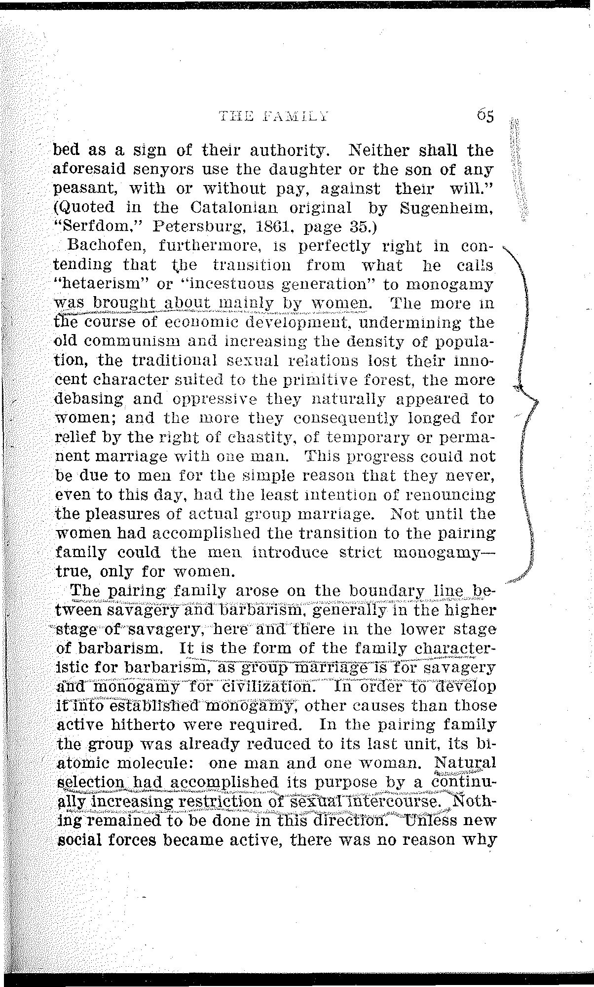 Bachofen's big volume was written In German, i. e., in the language of a nation that cared less than any other of its time for the history of the present family. Therefore he remained unknown. The man next succeeding him in the same field made his appearance in 1865 without having ever heard of Bachofen.