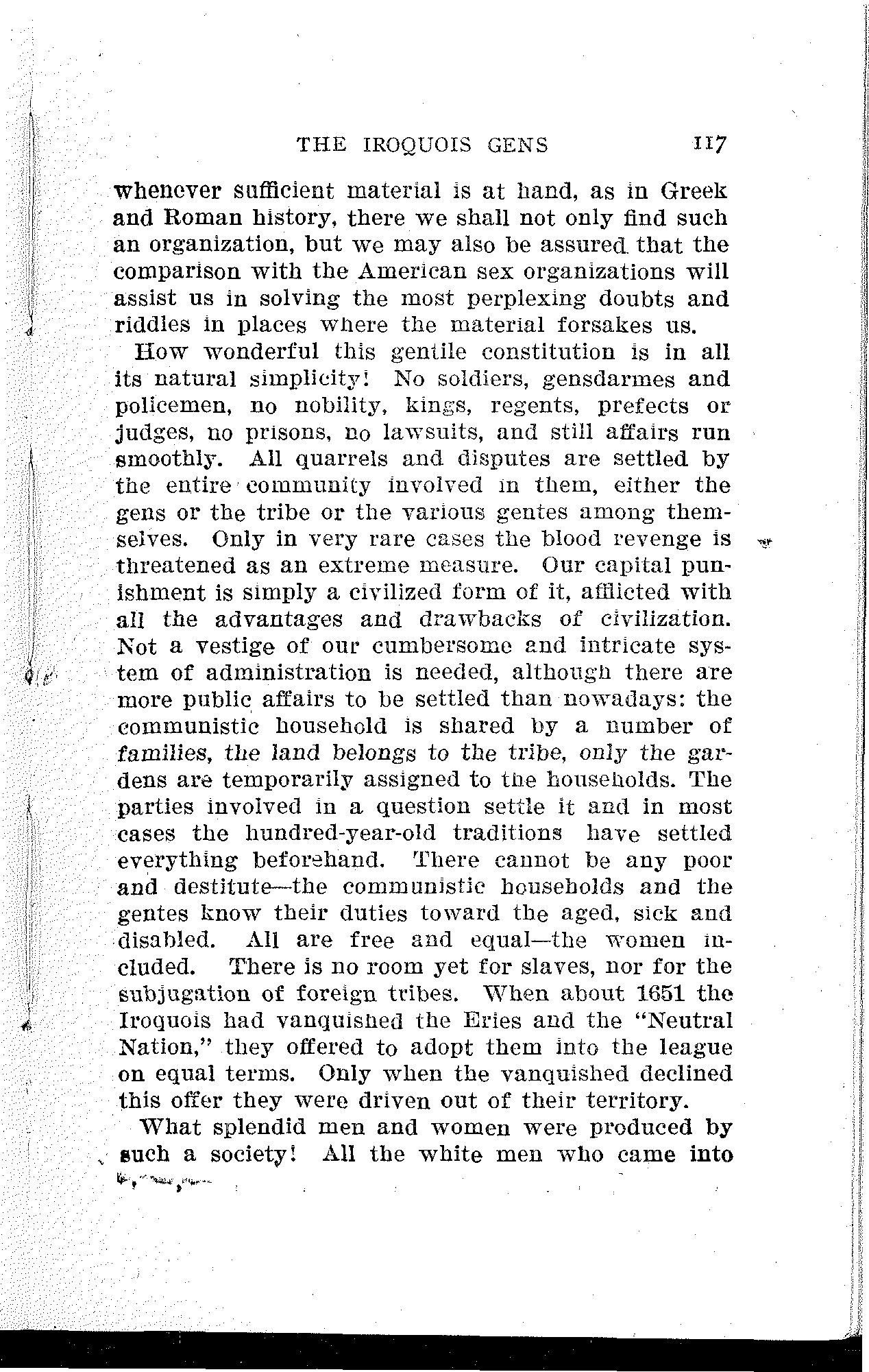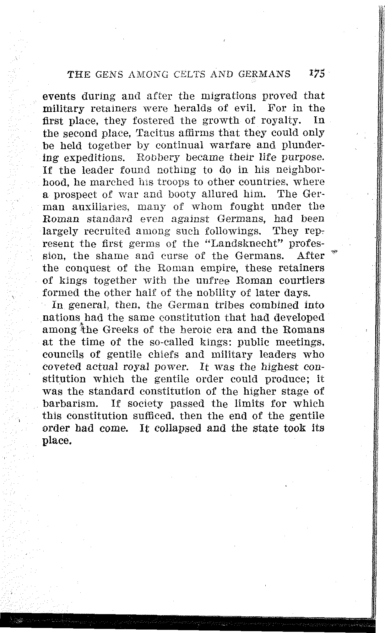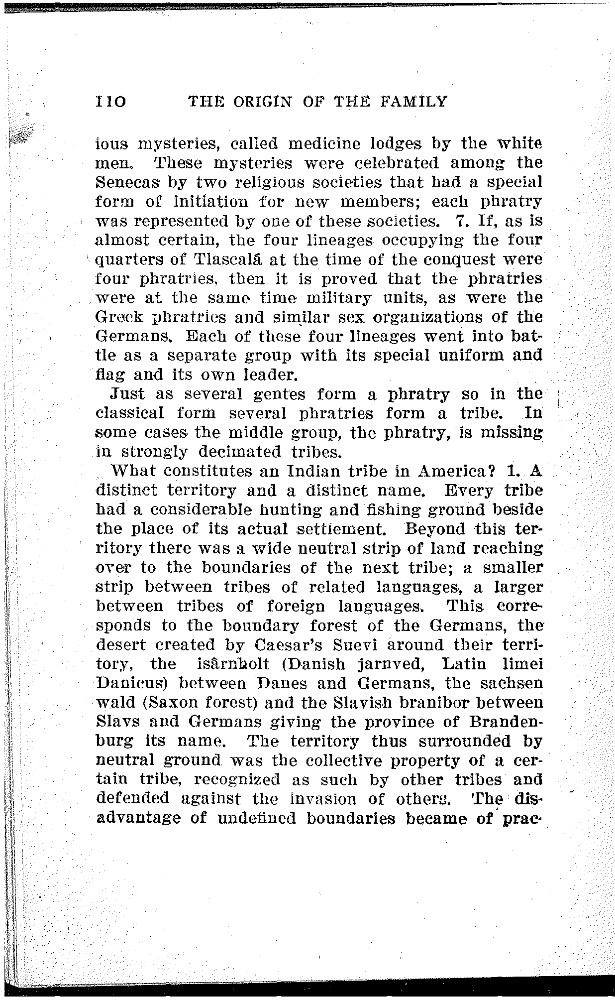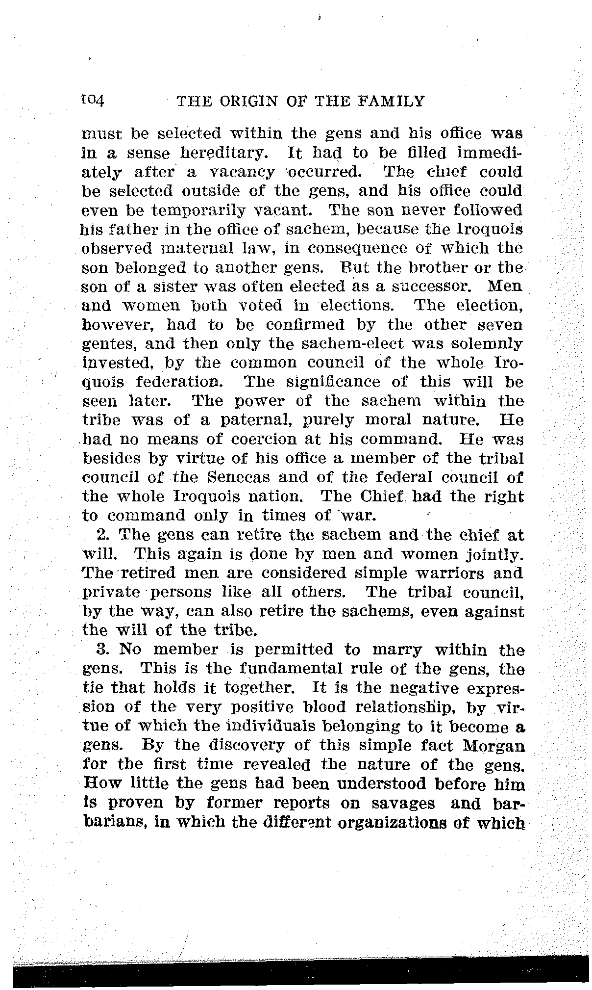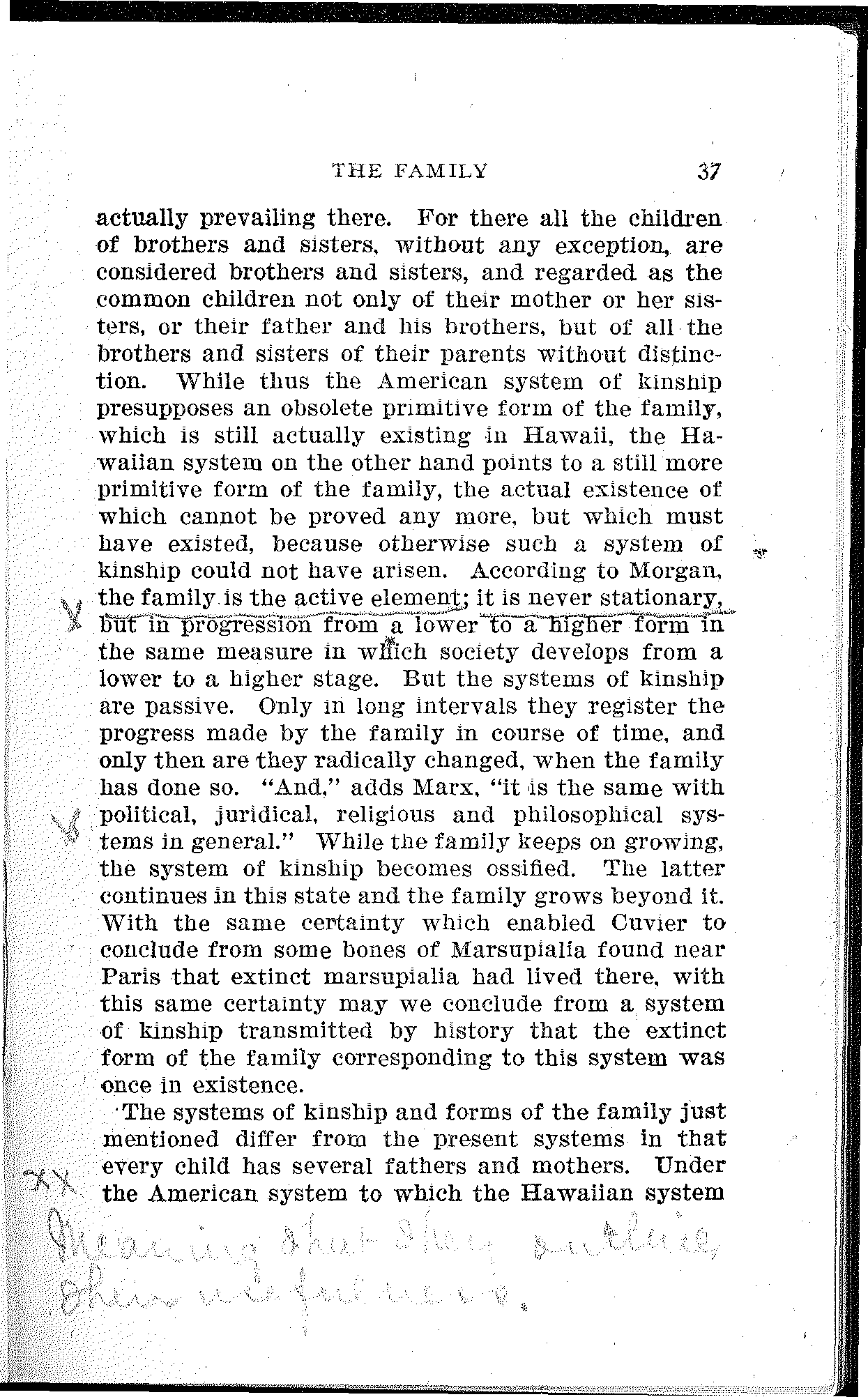 Morgan was the first to make an attempt at introducing a logical order into the history of primeval society. Until considerably more material is obtained, no further changes will be necessary and his arrangement will surely remain in force.