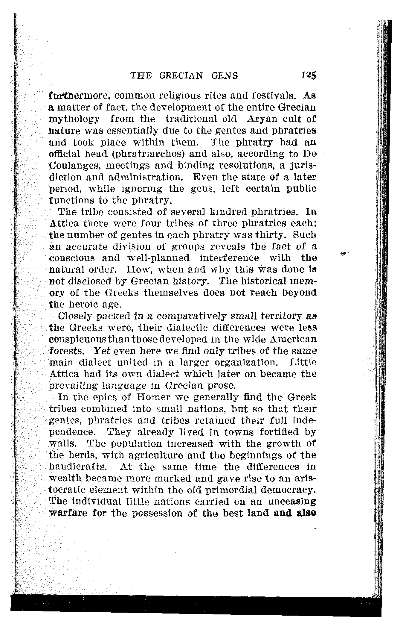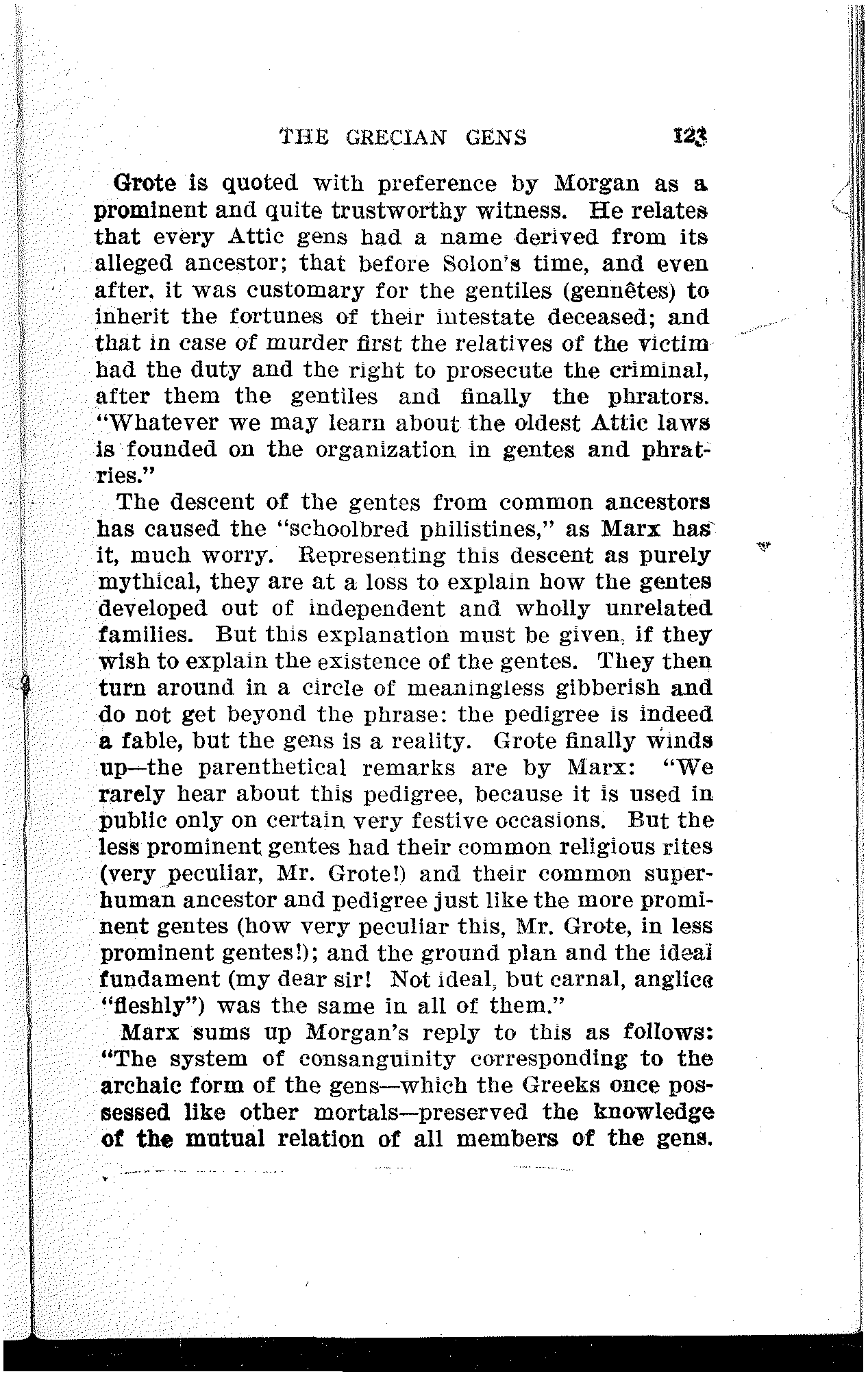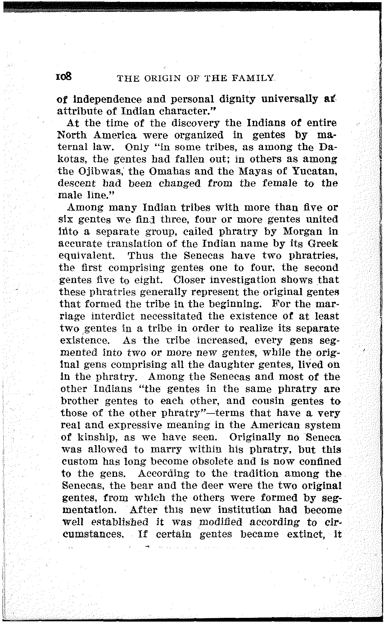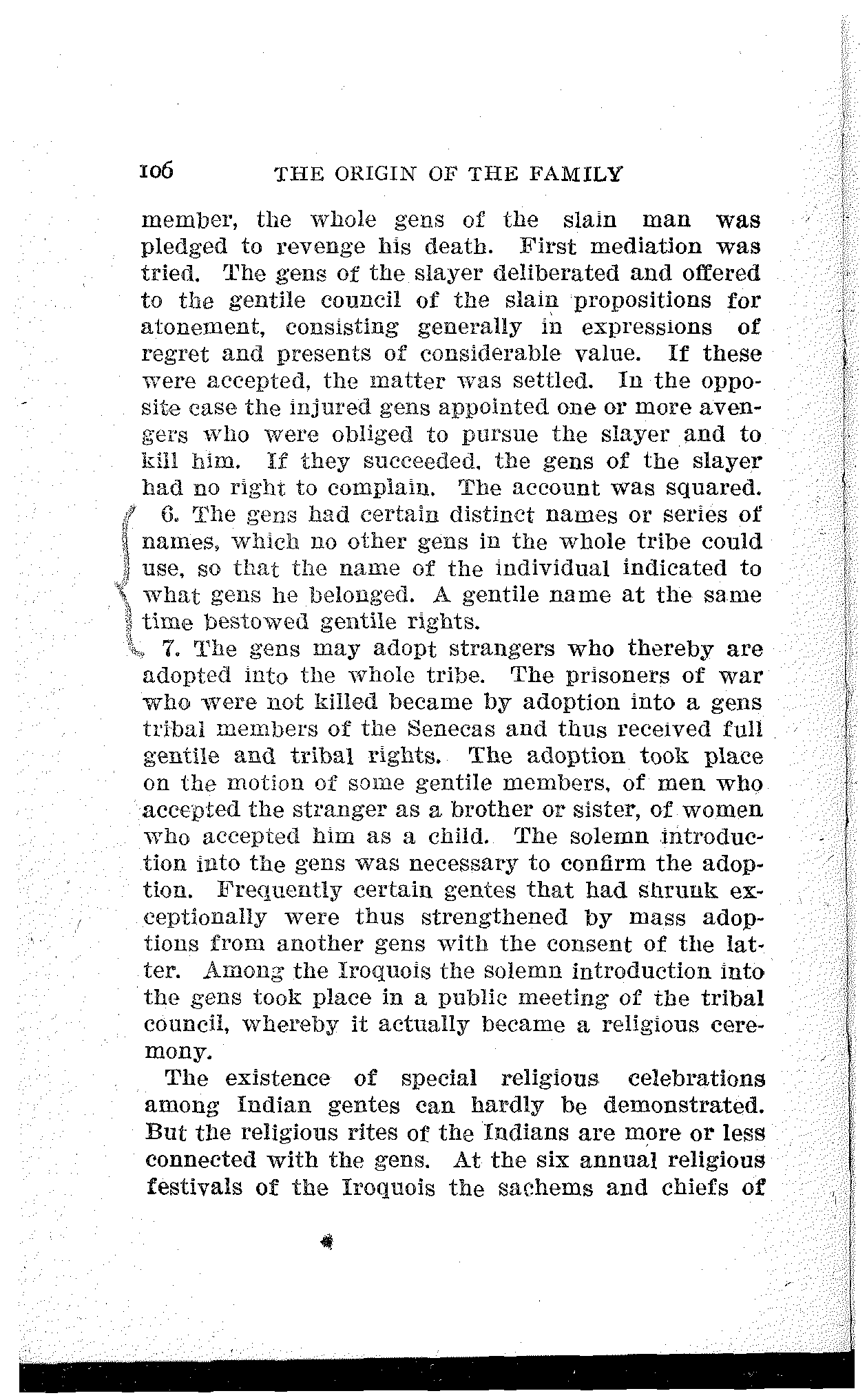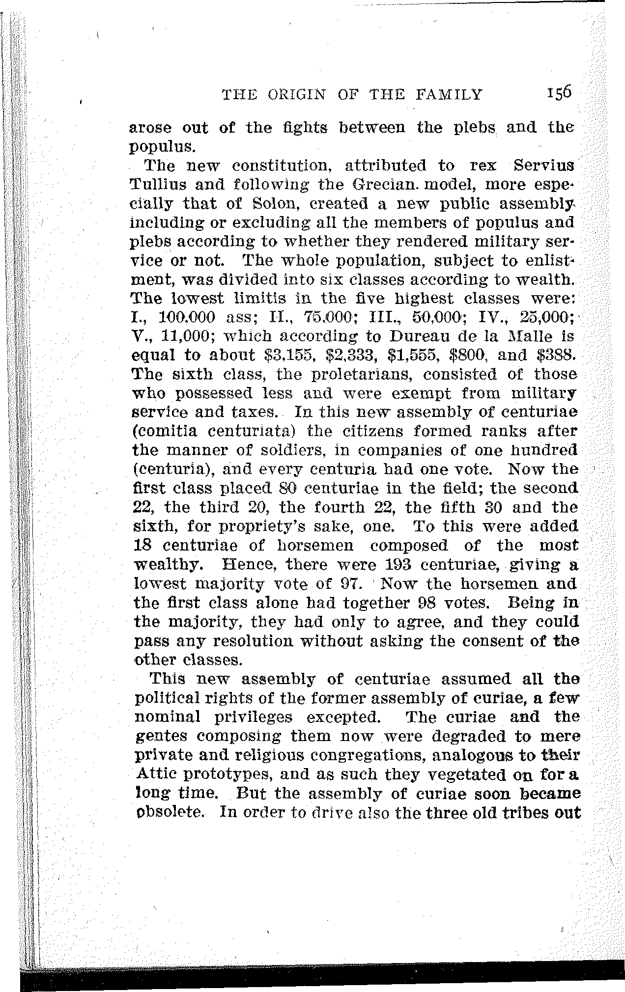 Morgan was the first to make an attempt at introducing a logical order into the history of primeval society. Until considerably more material is obtained, no further changes will be necessary and his arrangement will surely remain in force.