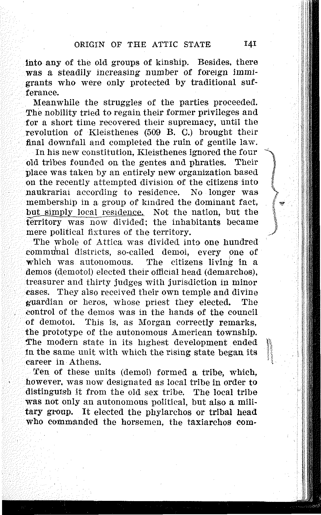 The state differs from gentilism in that it first divides its members by territories. As we have seen, the old bonds of blood kinship uniting the gentile bodies had become inefficient, because they were dependent on the condition, now no longer a fact, that all gentiles should live on a certain territory. The[207] territory was the same; but the human beings had changed. Hence the division by territories was chosen as the point of departure, and citizens had to exercise their rights and duties wherever they chose their abode without regard to gens and tribe. This organization of inhabitants by localities is a common feature of all states. It seems natural to us now. But we have seen what long and hard fighting was required before it could take, in Athens and Rome, the place of the old organization by blood kinship.