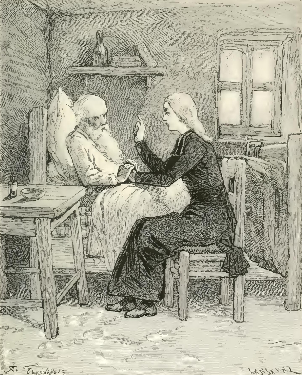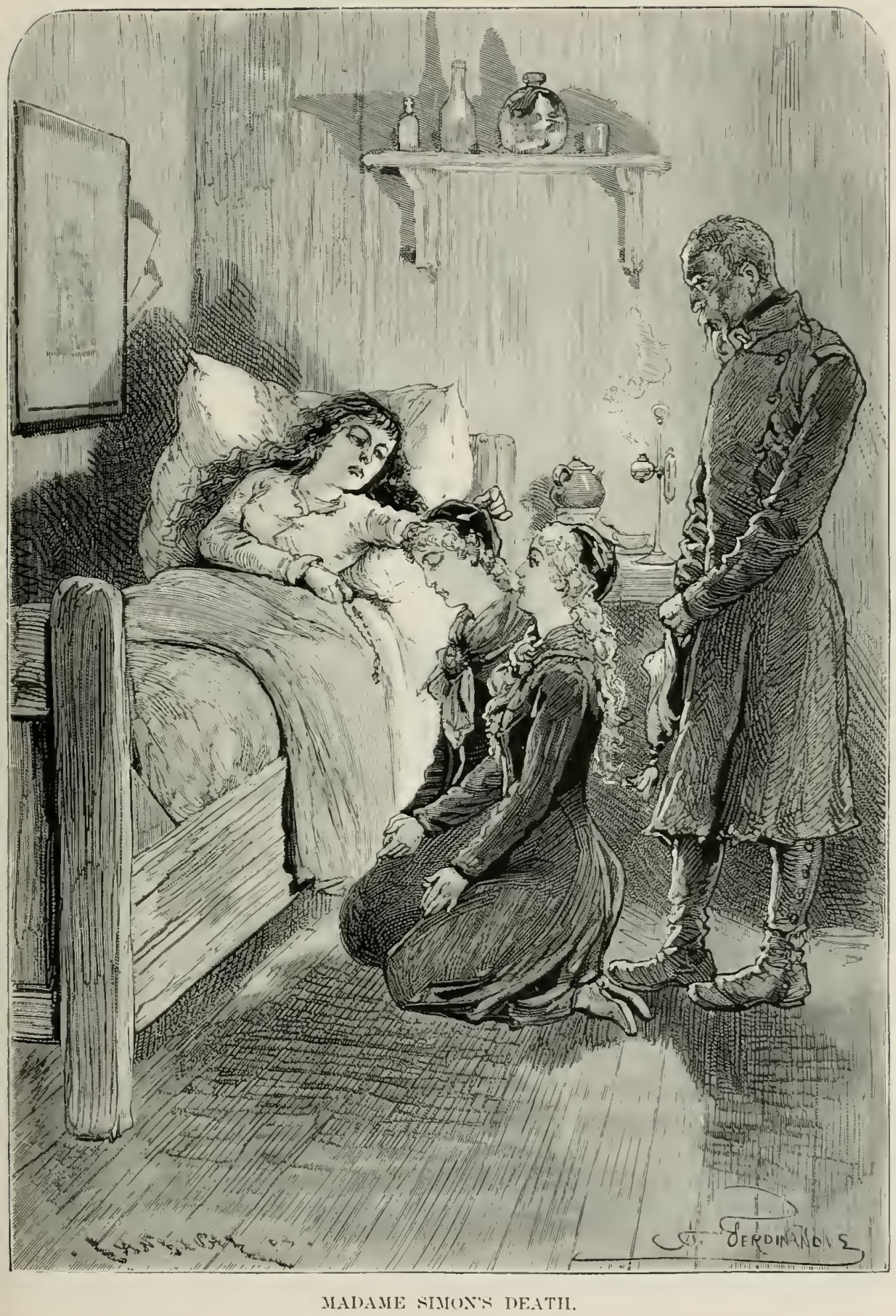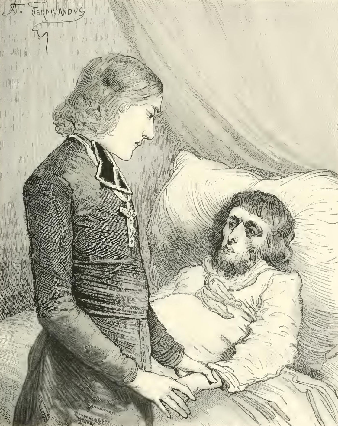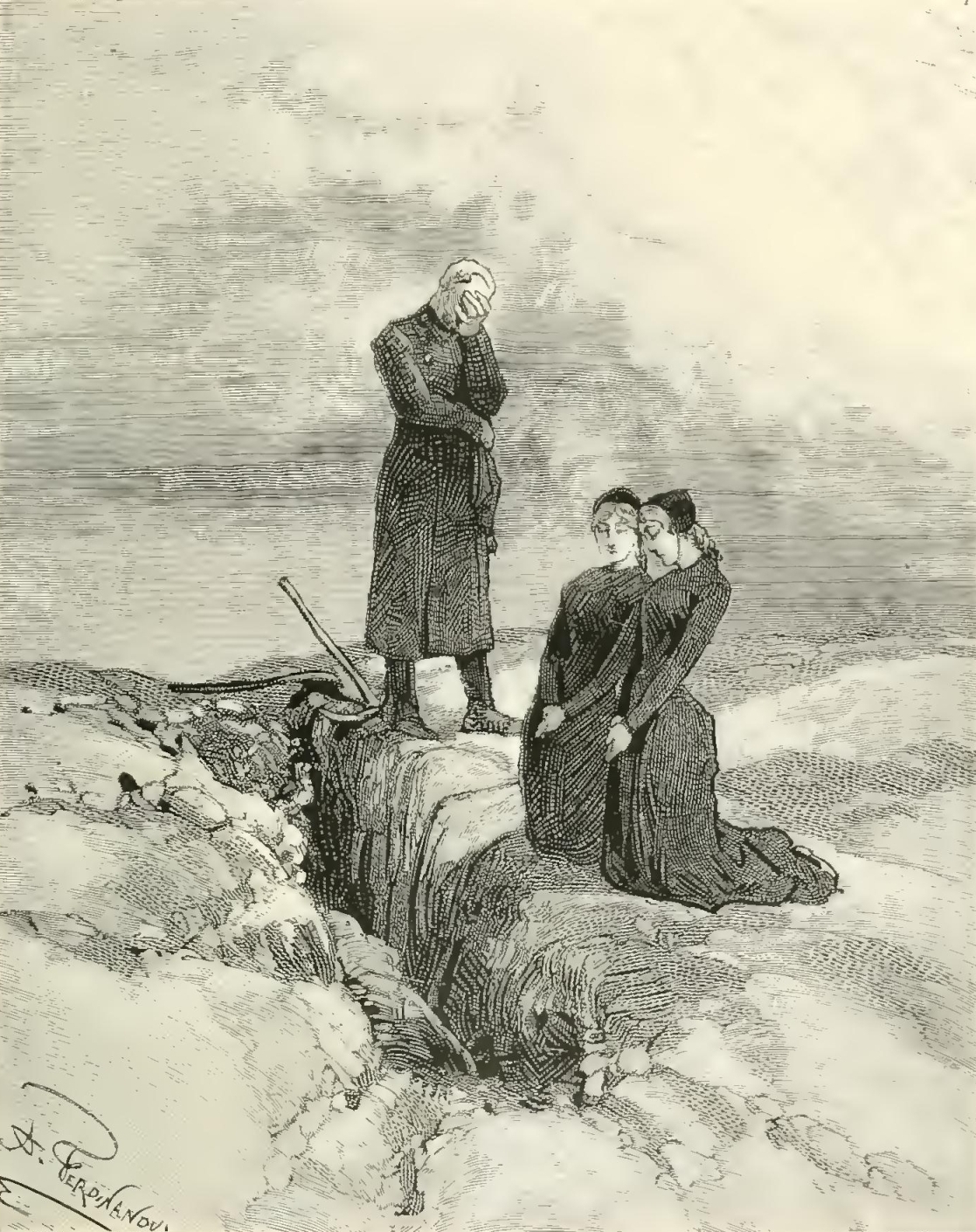“At these words, Agricola, Angela, and Magdalen gathered round the soldier. Anxiety was visible upon every face. Then, as he raised his head abruptly, one could see two large tears trickle down his cheek to his white moustache. ‘It is nothing, my children,’ said he, in a voice of emotion ‘it is nothing. Only, to-day is the first of June—and this day four years—’ He could not complete the sentence; and, as he raised his hands to his eyes, to brush away the tears, we saw that he held between his fingers a little bronze chain, with a medal suspended to it. That is his dearest relic. Four years ago, almost dying with despair at the loss of the two angels, of whom I have so often spoken to you, my friend, he took from the neck of Marshal Simon, brought home dead from a fatal duel, this chain and medal which his children had so long worn. I went down instantly, as you may suppose, to endeavor to soothe the painful remembrances of this excellent man; gradually, he grew calmer, and the evening was passed in a pious and quiet sadness.