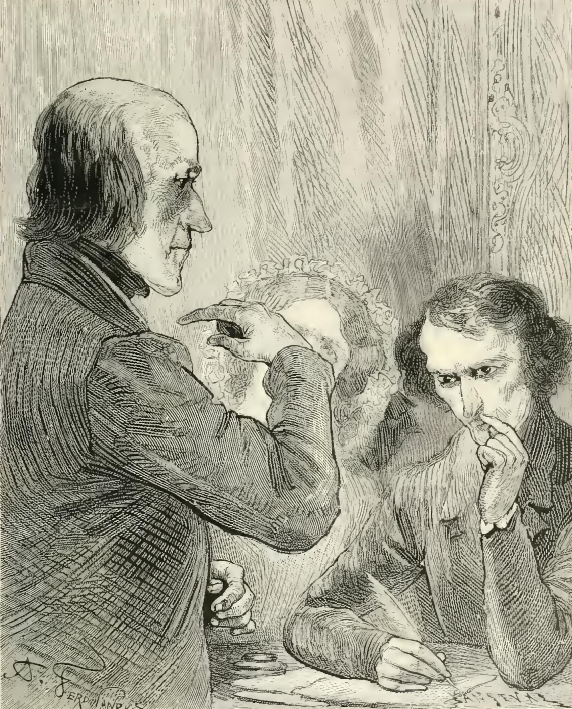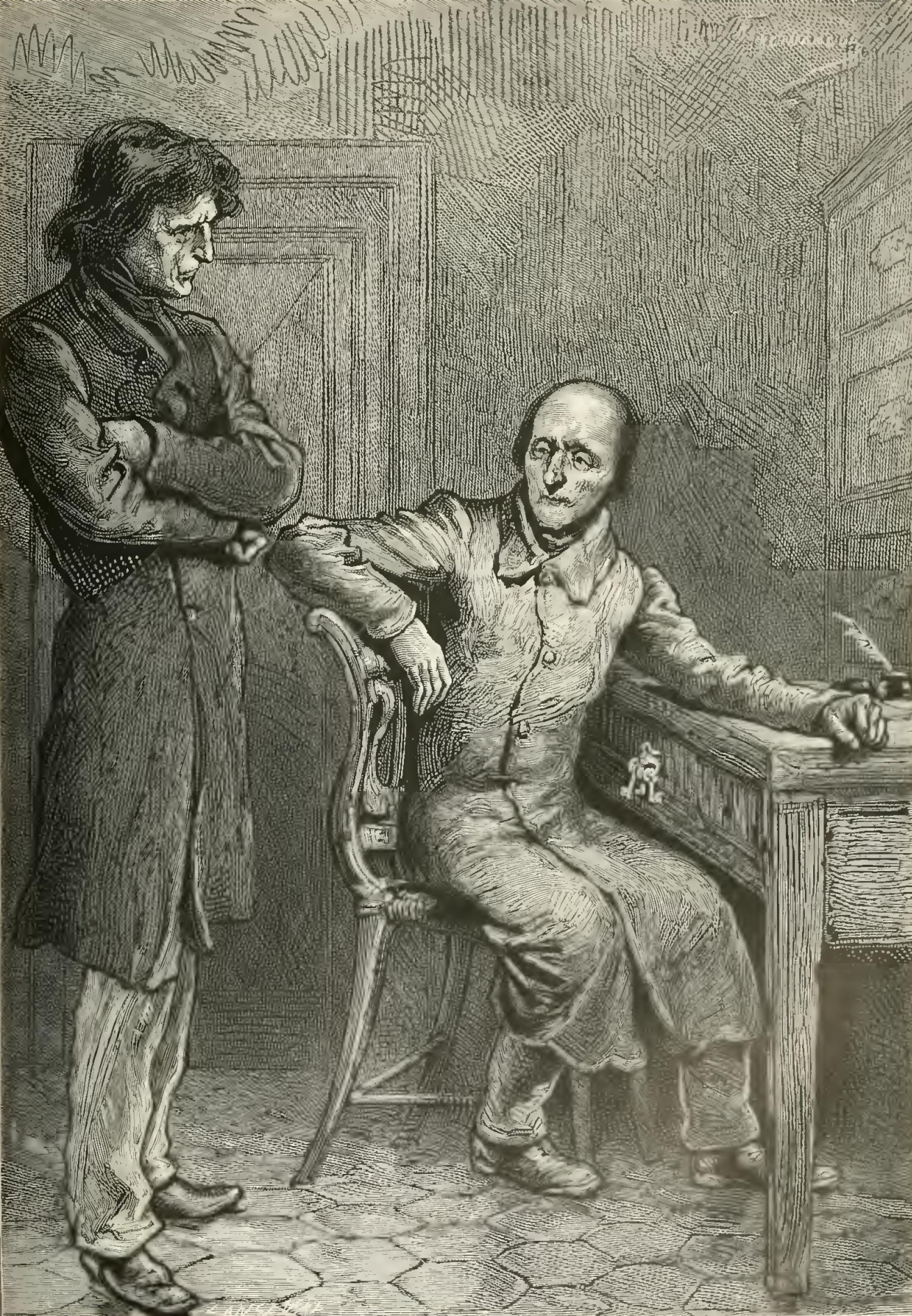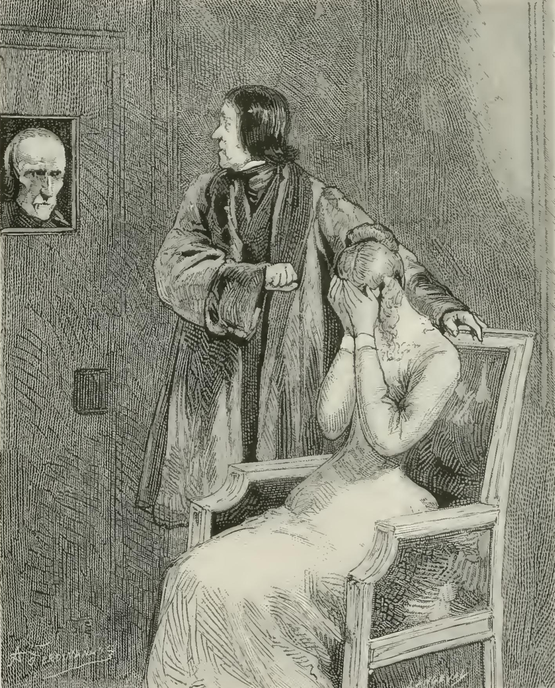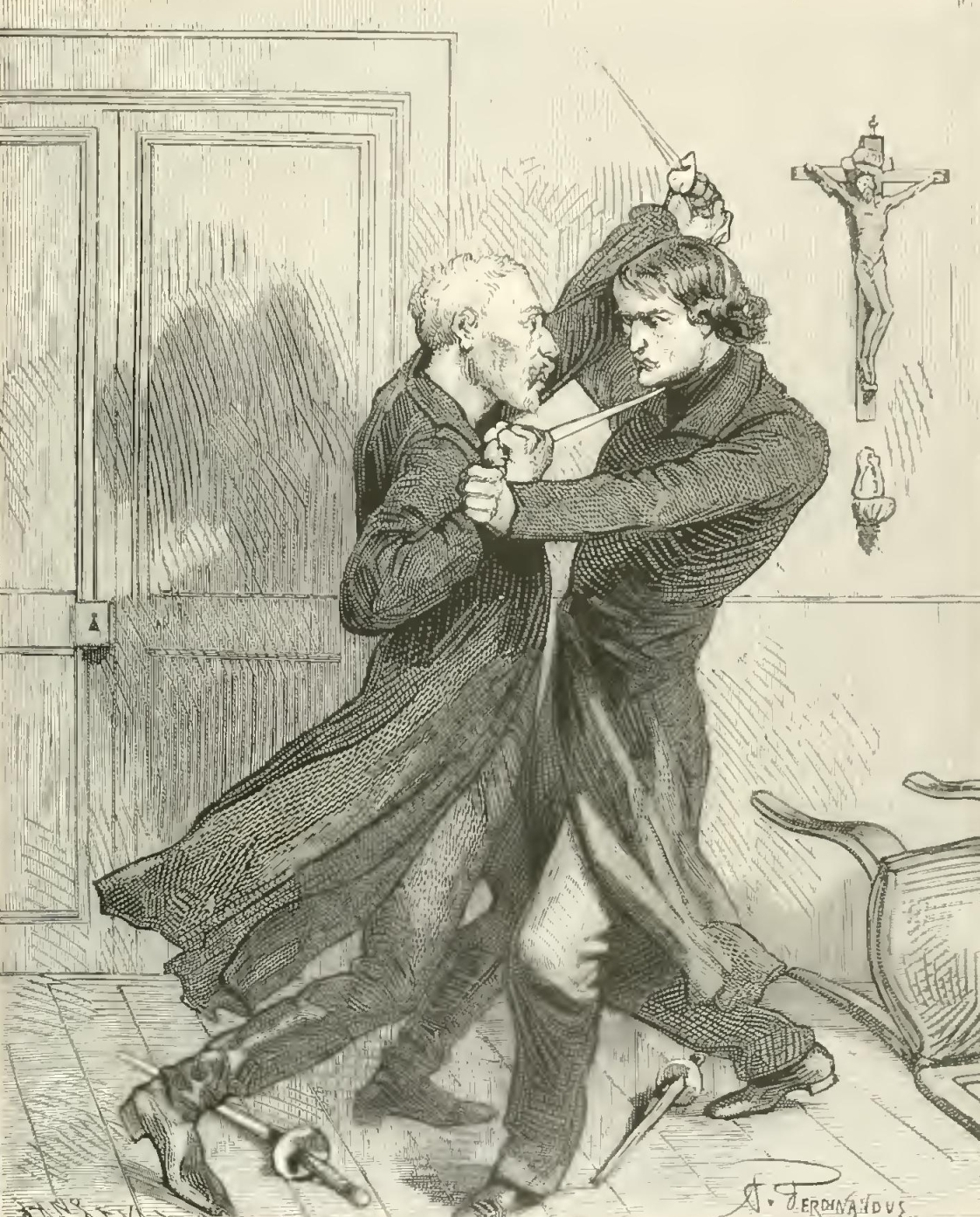 “But, alas! a painful incident disturbed the serenity of the picture. Suddenly I heard Dagobert’s wife say to him: ‘My dear—you are weeping!’