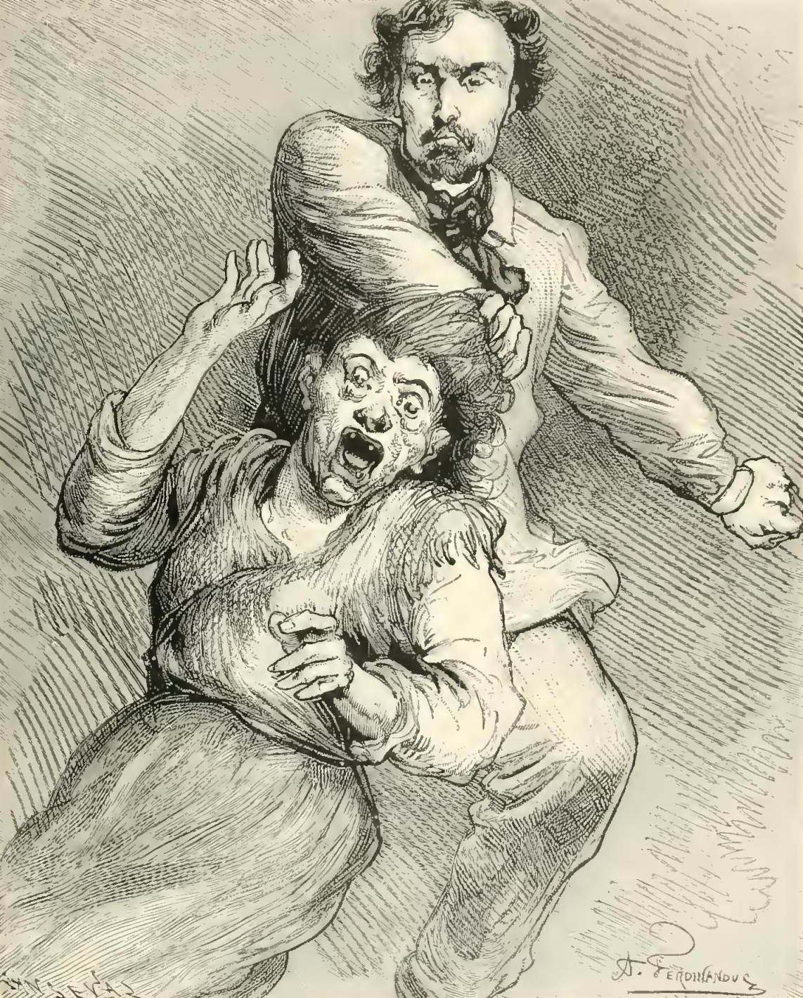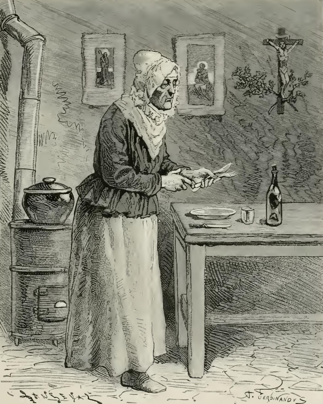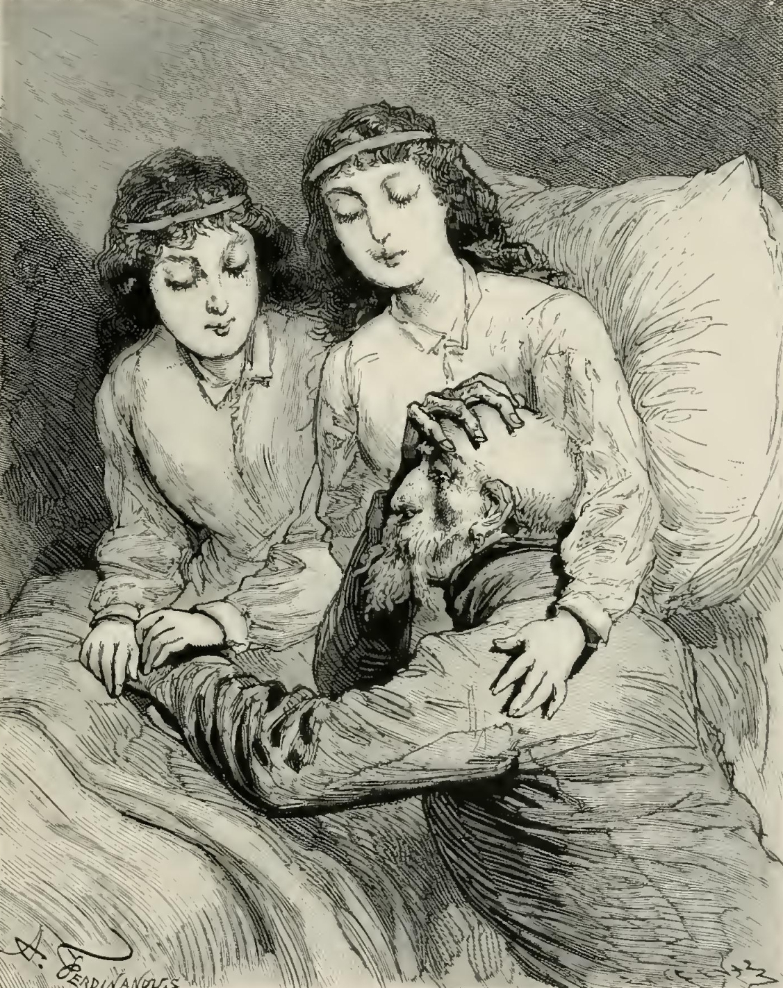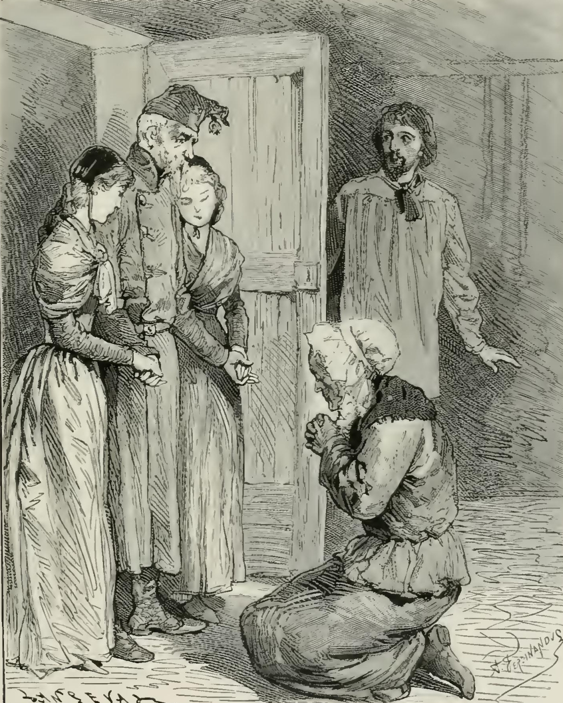 “But, alas! a painful incident disturbed the serenity of the picture. Suddenly I heard Dagobert’s wife say to him: ‘My dear—you are weeping!’