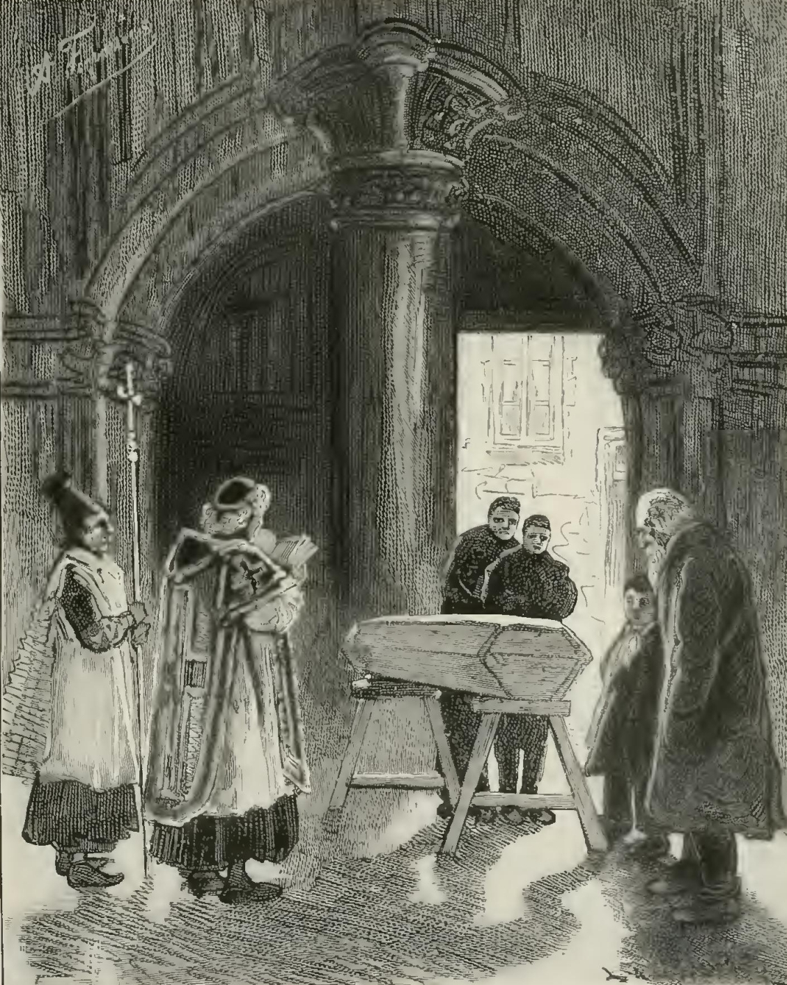 “Help!” repeated Rodin, in a tone of strangulation, “This poison is horrible.—But how—” Then, with a terrific cry of rage, as if a sudden idea had struck him, he exclaimed: “Ha! Faringhea—this morning—the holy water—he knows such subtle poisons. Yes—it is he—he had an interview with Malipieri. The demon!—Oh! it was well played. The Borgias are still the same. Oh! it is all over. I die. They will regret me, the fools!—Oh! hell! hell! The Church knows not its loss—but I burn—help!”