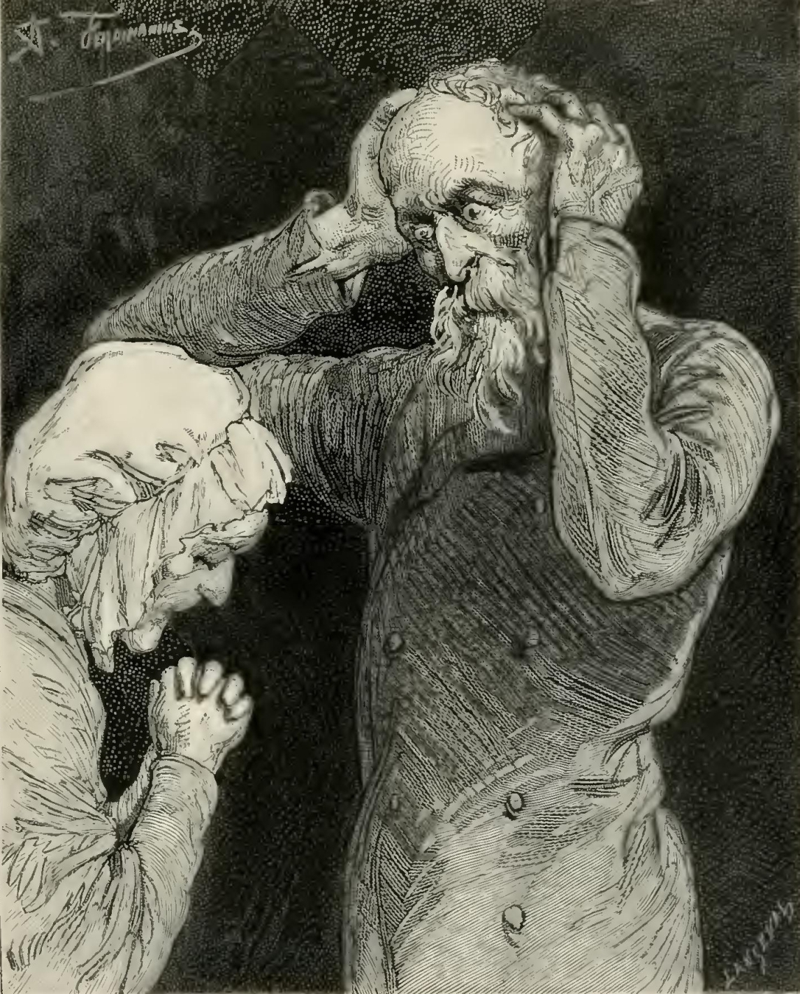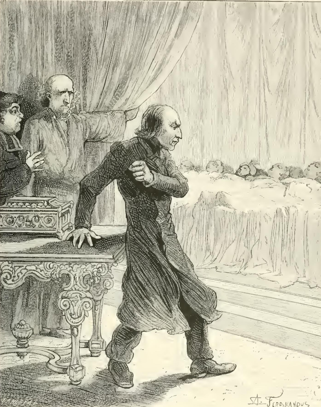 He advanced towards the marble slab. Seized with indignation and horror, Samuel threw himself before him, and, pressing with all his might on a knob in the lid of the casket—a knob which yielded to the pressure—he exclaimed: “Since your infernal soul is incapable of remorse, it may perhaps be shaken by disappointed avarice.”