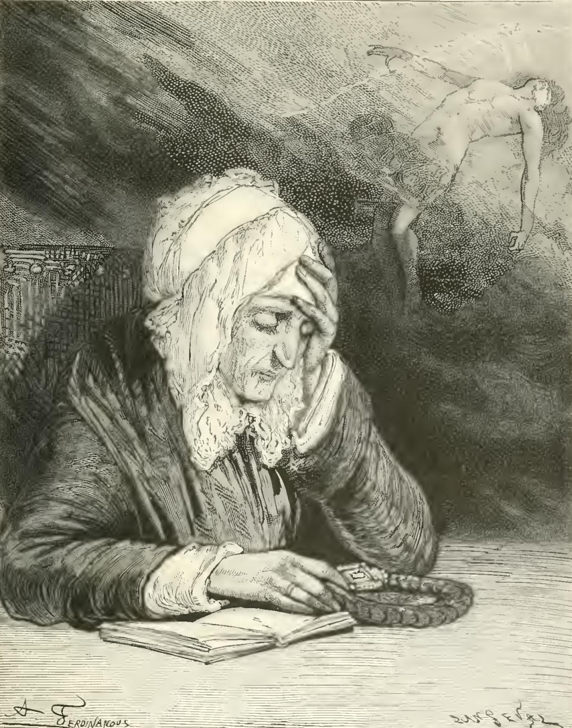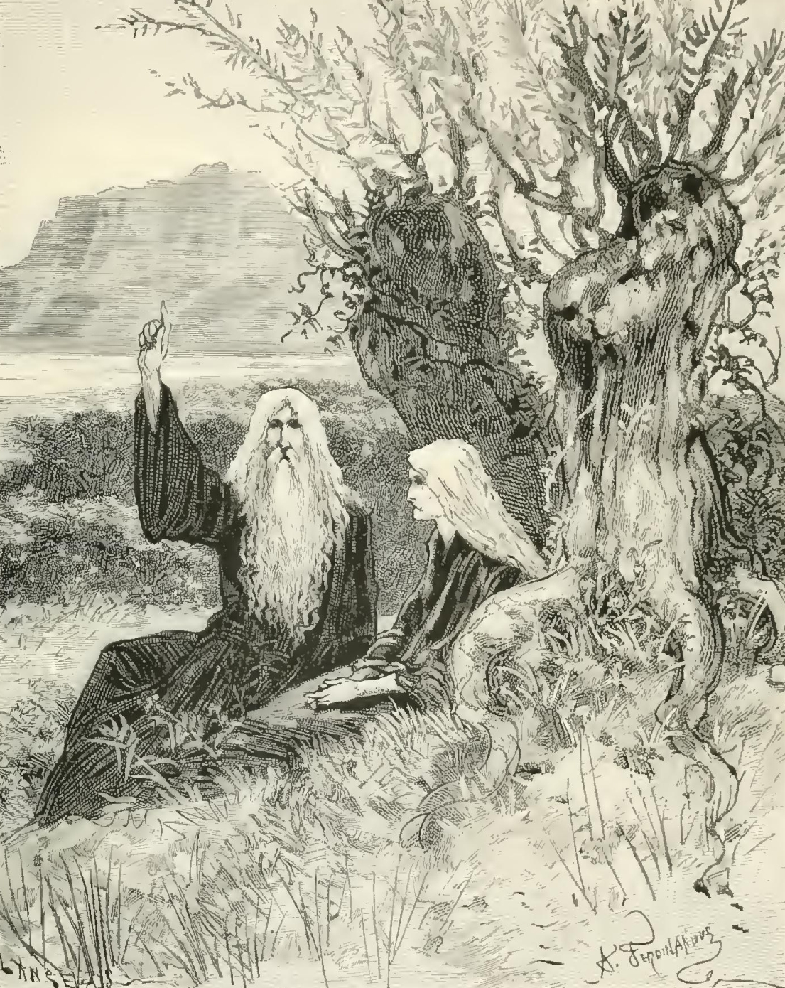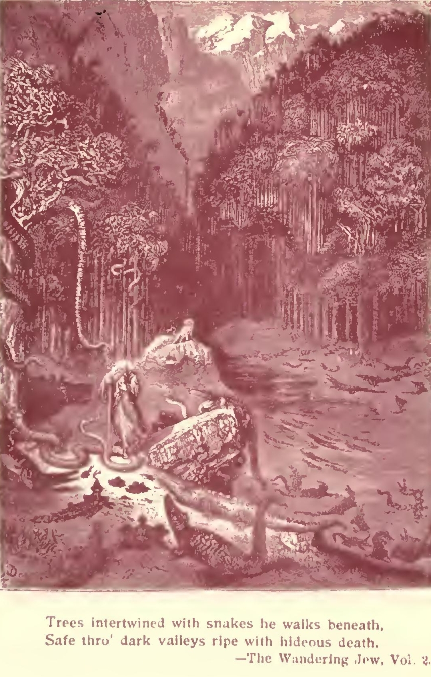 “Oh, my sister!” said the old man to the woman, who was reposing with him beneath the rustic arbor formed by the tuft of willow-trees; “oh, my sister! how many times during the centuries in which the hand of the Lord carried us onward, and, separated from each other, we traversed the world from pole to pole—how many times we have witnessed this awakening of nature with a sentiment of incurable grief!—Alas! it was but another day of wandering—another useless day added to our life, since it brought death no nearer!”