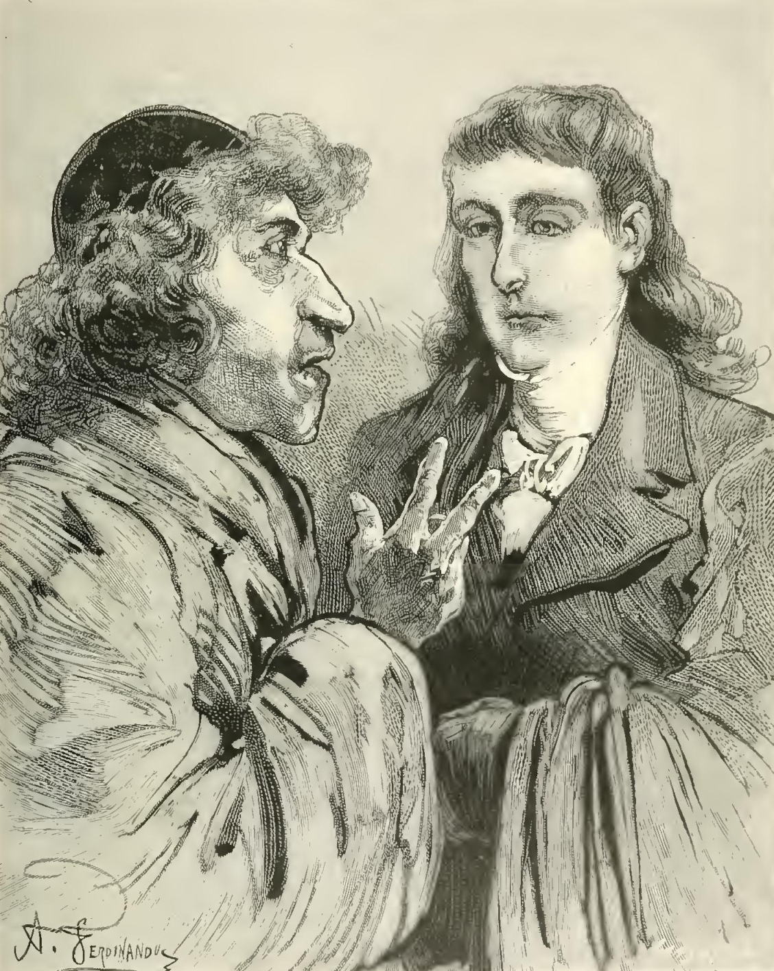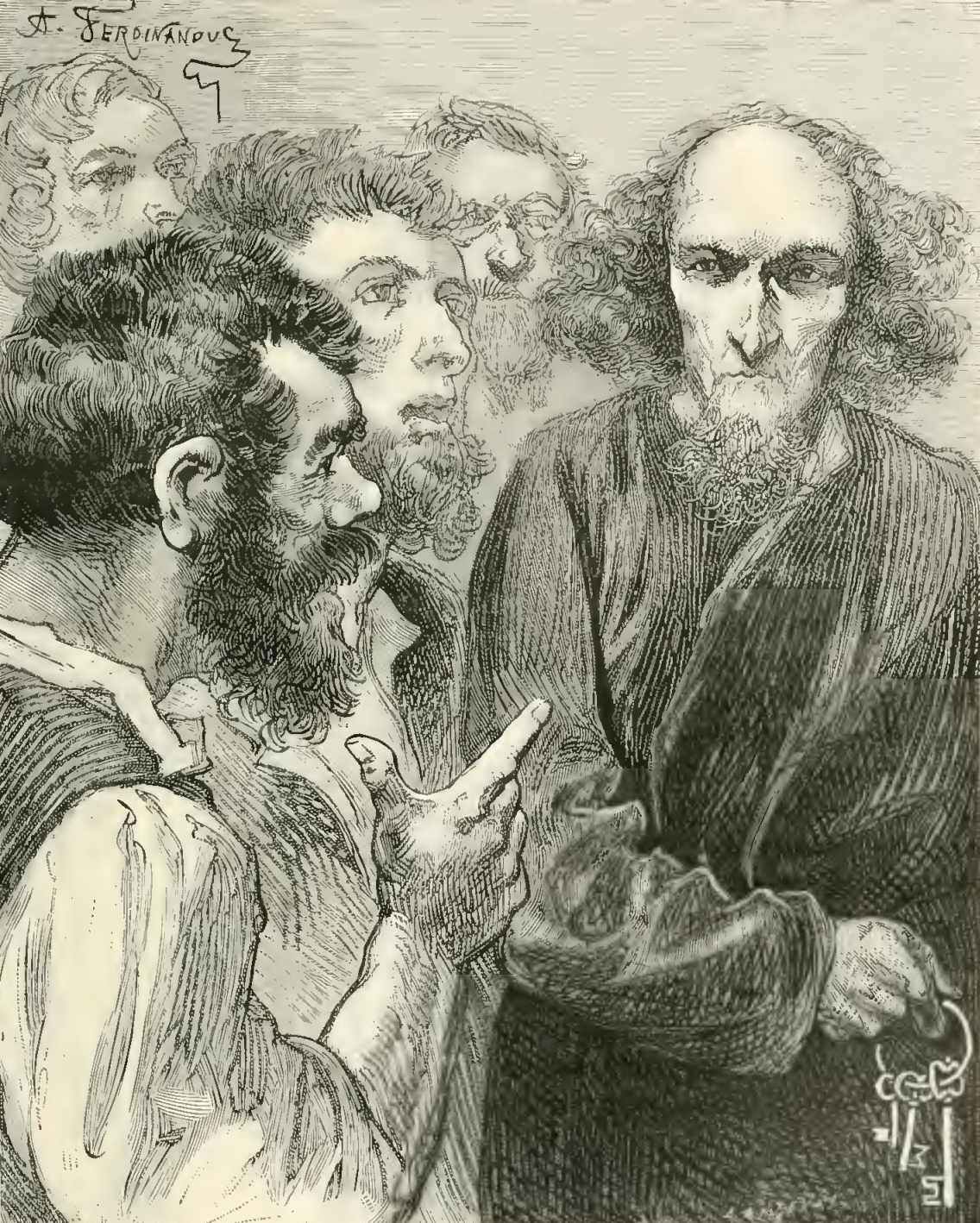 Then Father Caboccini handed the rescript to Rodin, that the latter might read the signature of the General of the Company. Samuel, greatly interested by this scene, drew a few steps nearer, leaving the casket half-open. Suddenly, Rodin burst into a loud laugh—a laugh of joy, contempt and triumph, impossible to describe. Father Caboccini looked at him with angry astonishment; when Rodin, growing still more imperious and haughty, and with an air of more sovereign disdain than ever, pushed aside the paper with the back of his dirty hand and said: “What is the date of that scribble?”