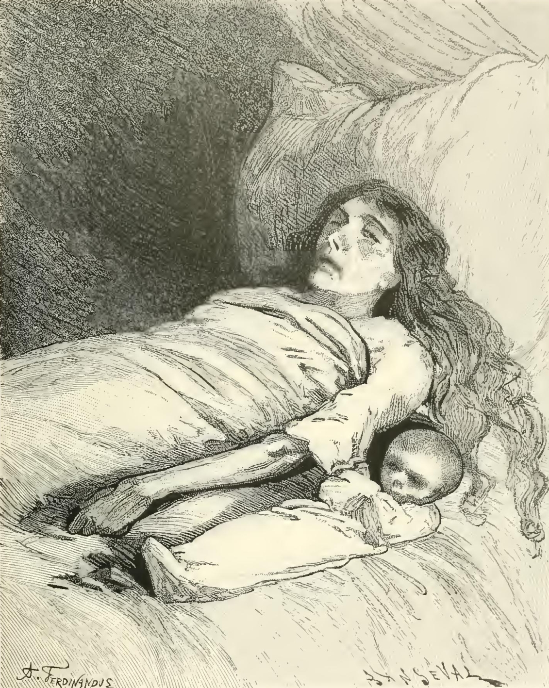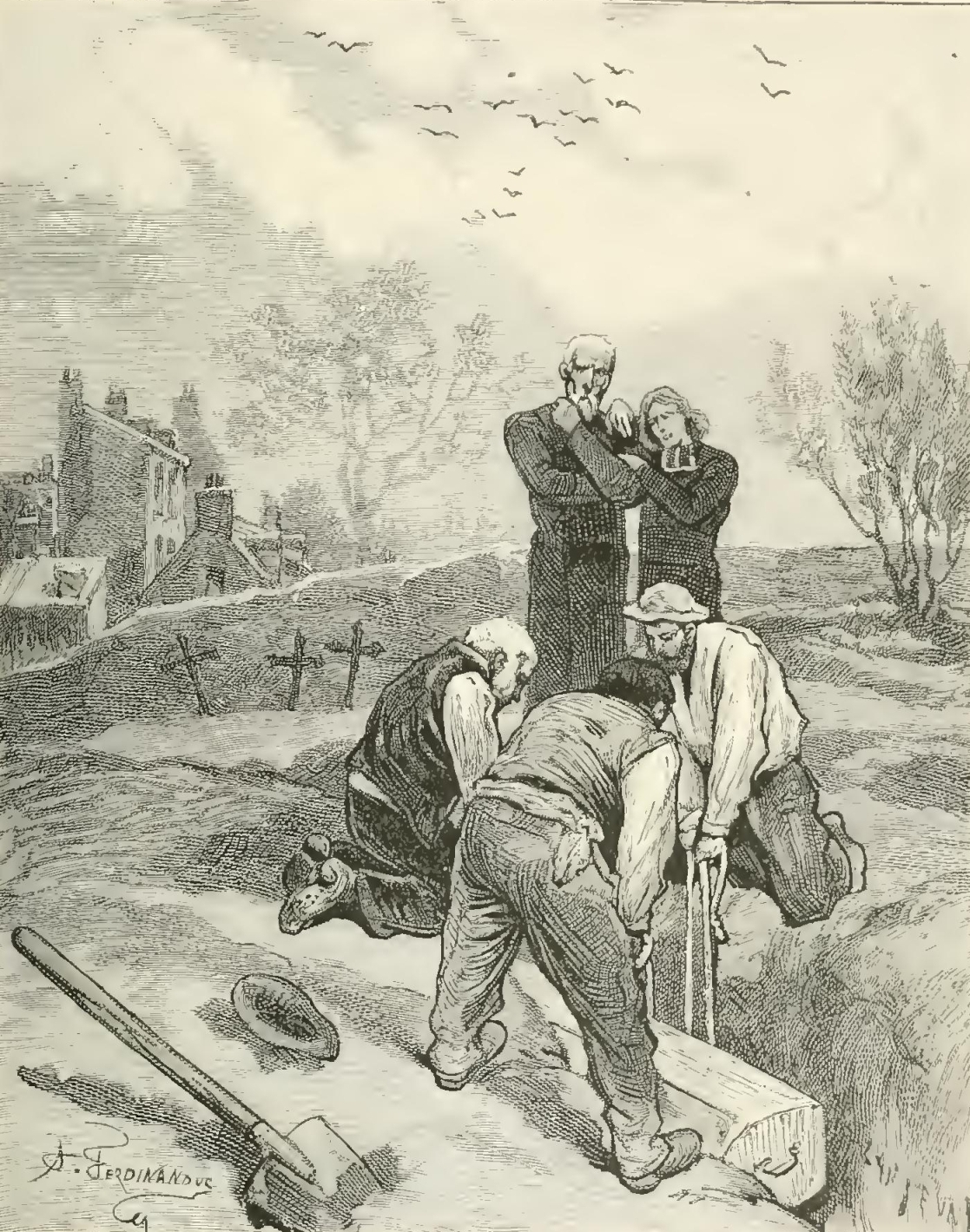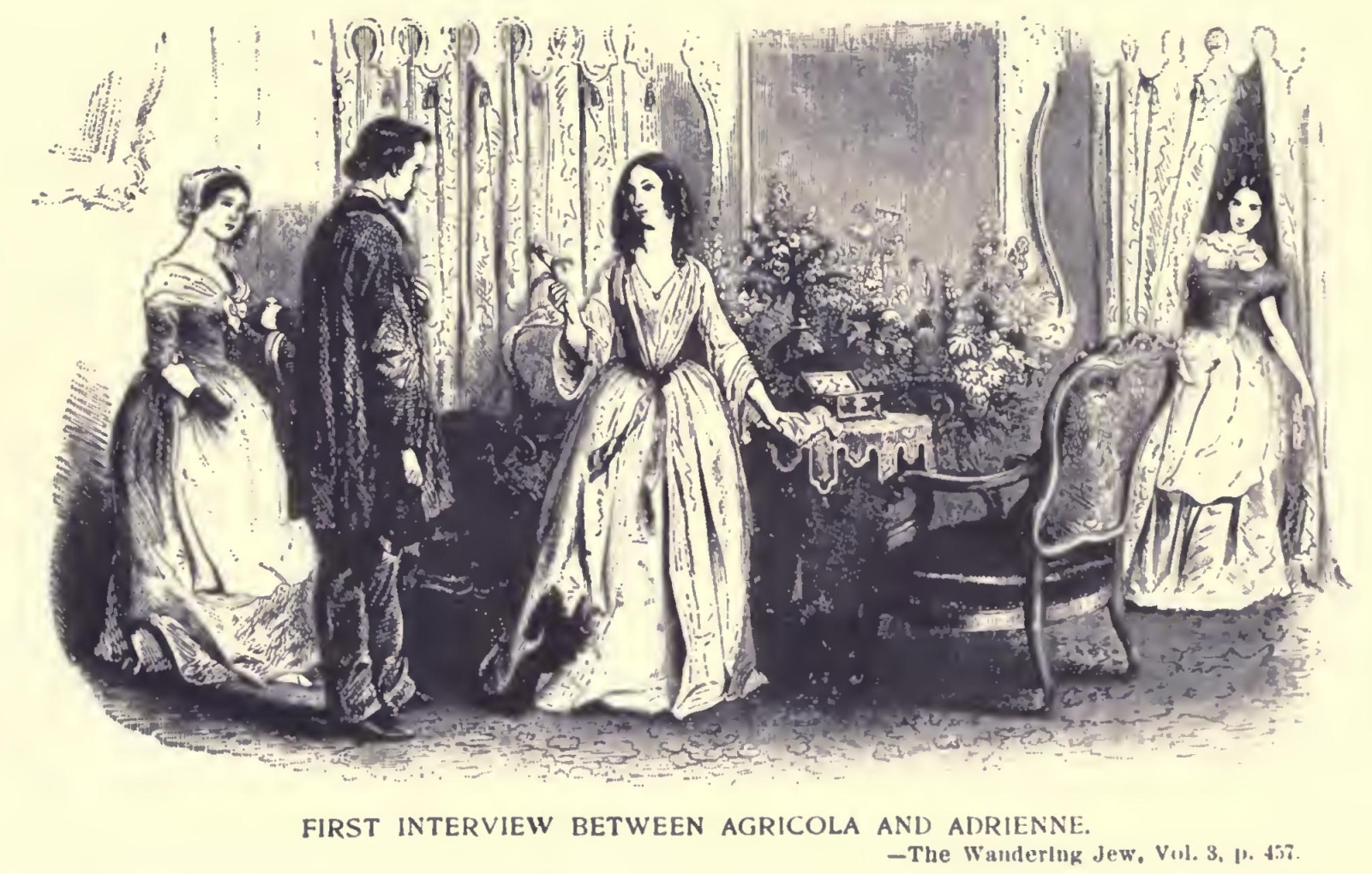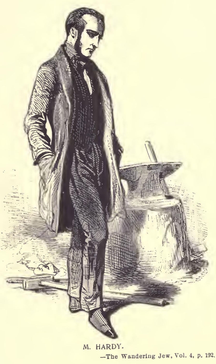 “You cannot imagine, my friend, when I returned to my chamber, what cruel thoughts came to my mind, as I recalled those past events, from which I generally turn away with fear and horror. Then I saw once more the victims of those terrible and mysterious plots, the awful depths of which have never been penetrated thanks to the death of Father d’A. and Father R., and the incurable madness of Madame de St.-D., the three authors or accomplices of the dreadful deeds. The calamities occasioned by them are irreparable; for those who were thus sacrificed to a criminal ambition, would have been the pride of humanity by the good they would have done. Ah, my friend! if you had known those noble hearts; if you had known the projects of splendid charity, formed by that young lady, whose heart was so generous, whose mind so elevated, whose soul so great! On the eve of her death, as a kind of prelude to her magnificent designs, after a conversation, the subject of which I must keep secret, even from you, she put into my hands a considerable sum, saying, with her usual grace and goodness: ‘I have been threatened with ruin, and it might perhaps come. What I now confide to you will at least be safe—safe—for those who suffer. Give much—give freely—make as many happy hearts as you can. My happiness shall have a royal inauguration!!’ I do not know whether I ever told you, my friend, that, after those fatal events, seeing Dagobert and his wife reduced to misery, poor ‘Mother Bunch’ hardly able to earn a wretched subsistence, Agricola soon to become a father, and myself deprived of my curacy, and suspended by my bishop, for having given religious consolations to a Protestant, and offered up prayers at the tomb of an unfortunate suicide—I considered myself justified in employing a small portion of the sum intrusted to me by Mdlle. de Cardoville in the purchase of this farm in Dagobert’s name.