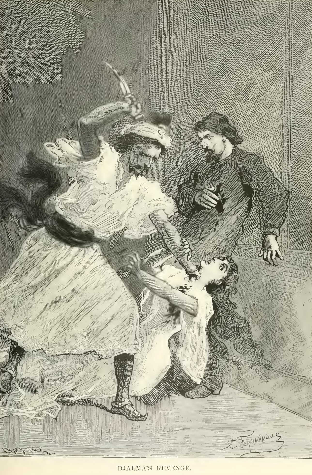 “Behold those whom thou host slain!” cried Samuel, in a voice broken with sobs. “Yea! your detestable plots caused their death—and, as they fell one by one, it was my pious care to obtain possession of their poor remains, that they may all repose in the same sepulchre. Oh!—cursed—cursed—cursed—be thou who has killed them! But their spoils shall escape thy murderous hands.”