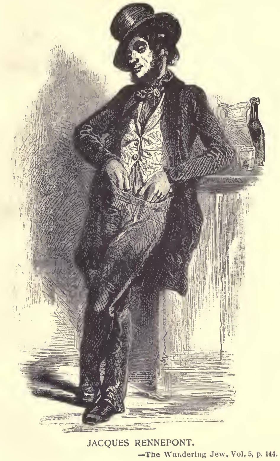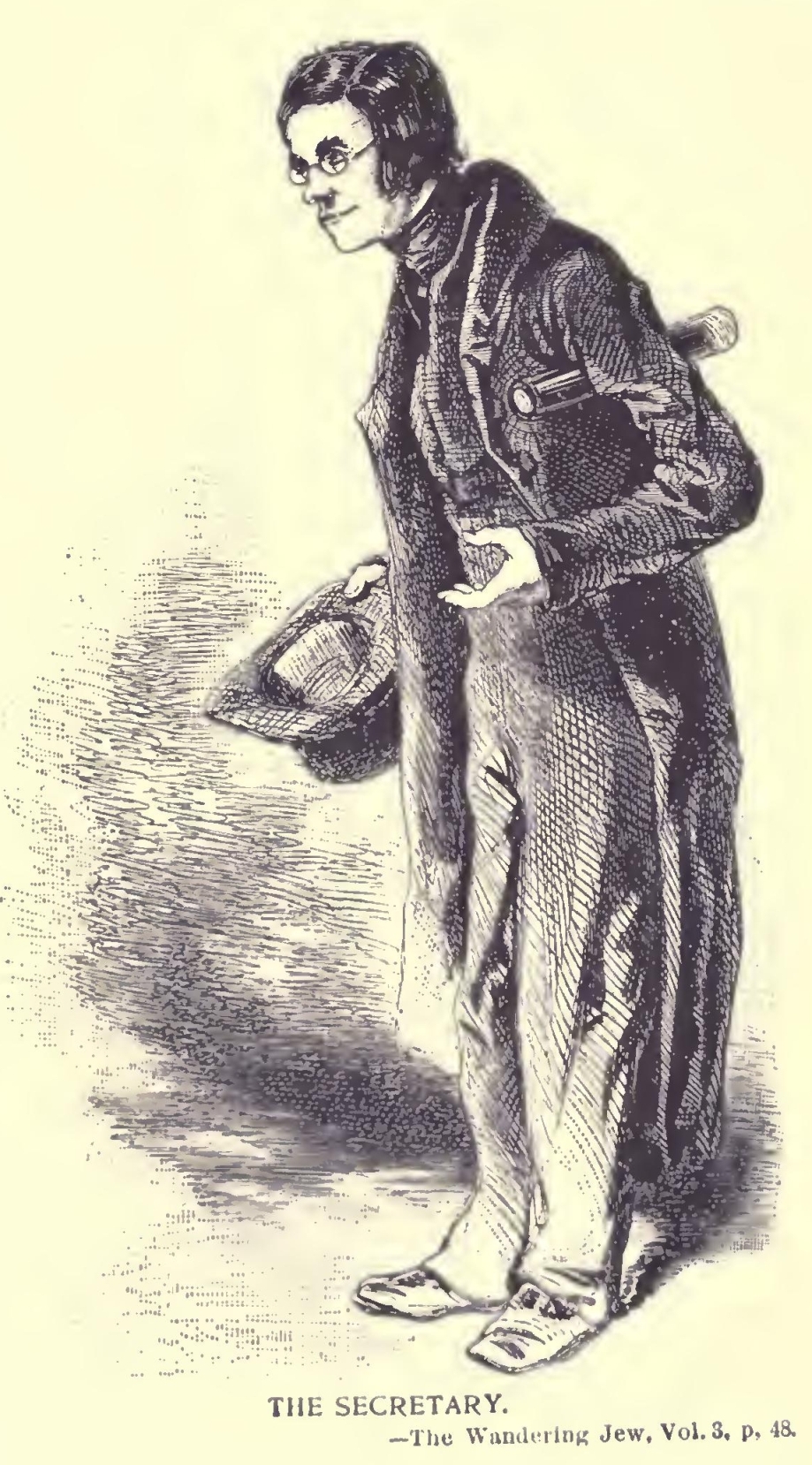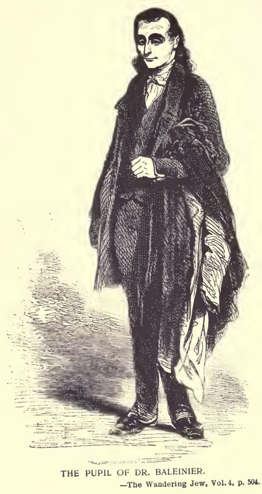 More and more the novel appealed to his imagination and suited his gifts. His themes ranged from the fabulous to the strictly historical, and he became popular as a writer of romance and fictionized fact. His plays, however, were persistent failures. When he published “The Mysteries of Paris”, his national fame was assured, and with the writing of “The Wandering Jew” he achieved world-wide renown. Then, at the height of his literary career, Eugene Sue was driven into exile after Louis Napoleon overthrew the Constitutional Government in a coup d’etat and had himself officially proclaimed Emperor Napoleon III. The author of “The Wandering Jew” died in banishment five years later.