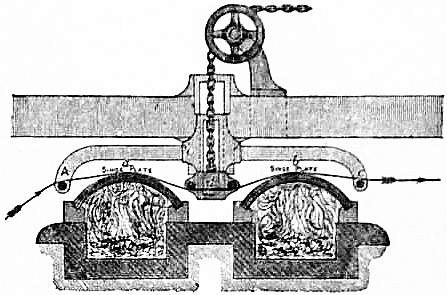 Metallurgy.—Bismuth is extracted from its ores by dry, wet, or electro-matallurgical methods, the choice depending upon the composition of the ore and economic conditions. The dry process is more frequently practised, for the easy reducibility of the oxide and sulphide, together with the low melting-point of the metal, renders it possible to effect a ready separation of the metal from the gangue and impurities. The extraction from ores in which the bismuth is present in the metallic condition may be accomplished by a simple liquation, or melting, in which the temperature is just sufficient to melt the bismuth, or by a complete fusion of the ore. The first process never extracts all the bisbuth, as much as one-third being retained in the matte or speiss; the second is more satisfactory, since the extraction is more complete, and also allows the addition of reducing agents to decompose any admixed bismuth oxide or sulphide. In the liquidation process the ore is heated in inclined cylindrical retorts, and the molten metal is tapped at the lower end; the residues being removed from the upper end. The fusion process is preferably carried out in crucible furnaces; shaft furnaces are unsatisfactory on account of the disintegrating action of the molten bismuth on the furnace linings.